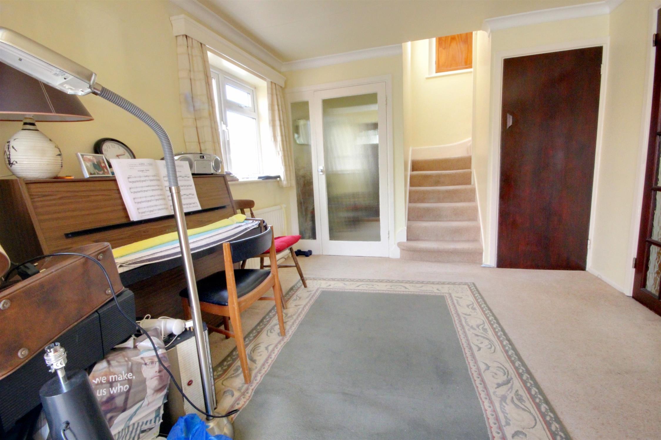 Side aspect double glazed window, rear aspect double glazed doors leading to the rear garden, radiator, stairs to the first floor with storage cupboard under, doors to the lounge and kitchen/breakfast room.