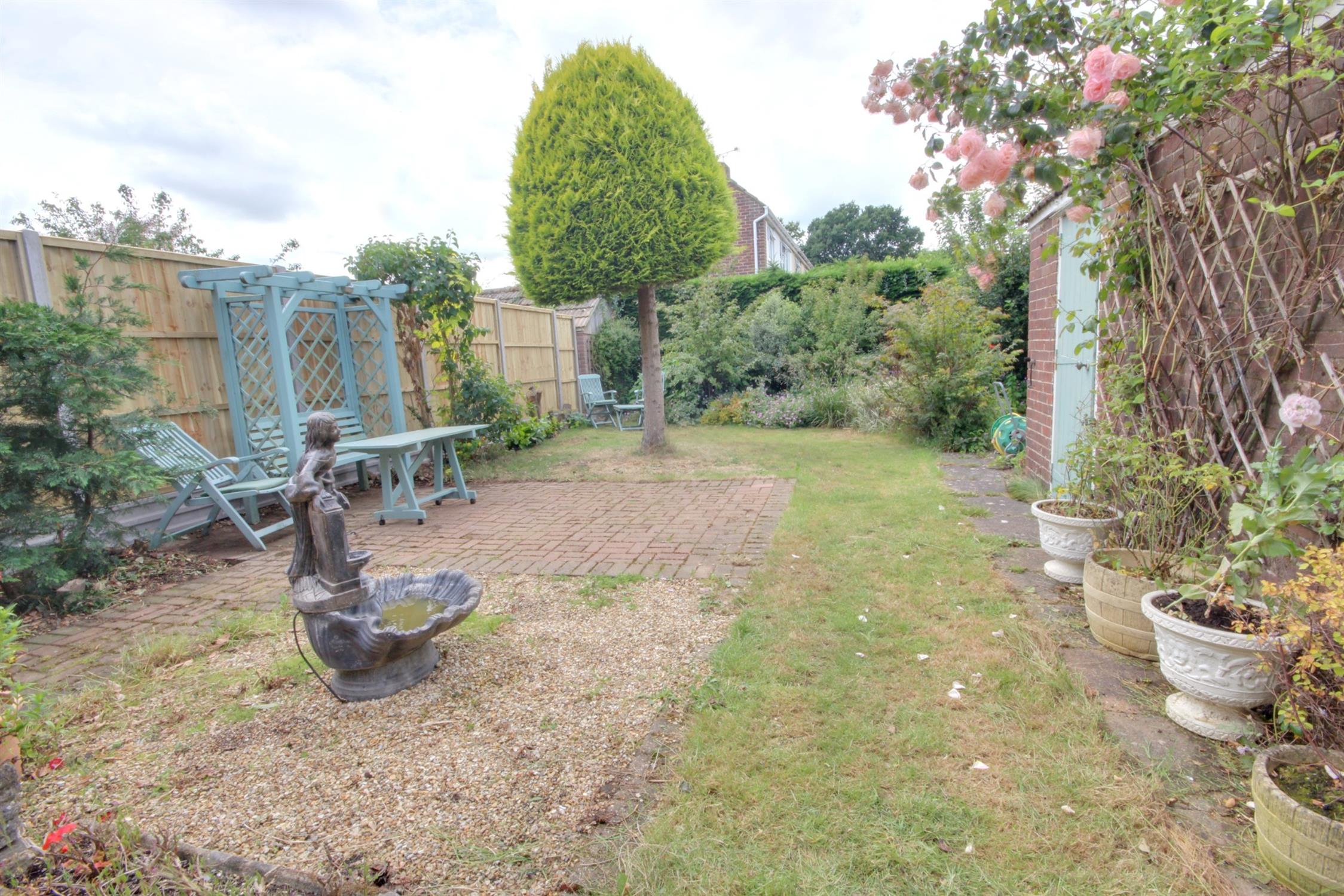 Patio and block brick seating area, mature flower and shrub borders, side pedestrian access, outside tap.