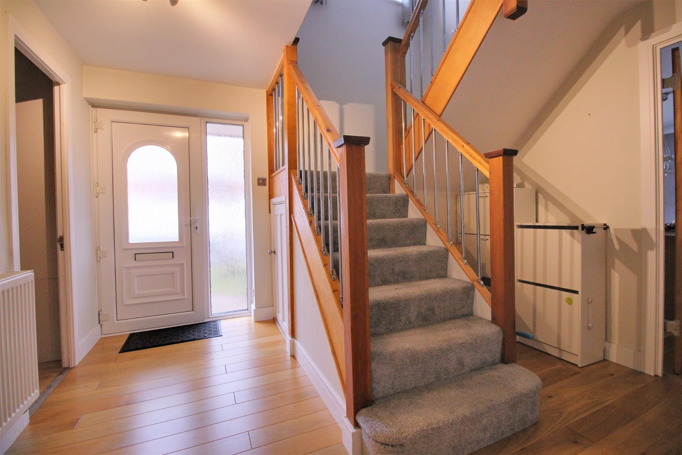 Via double glazed front door with a double glazed side panel, radiator, wooden flooring, doors to the downstairs wc, kitchen/breakfast room, lounge and dining room, stairs to the first floor.