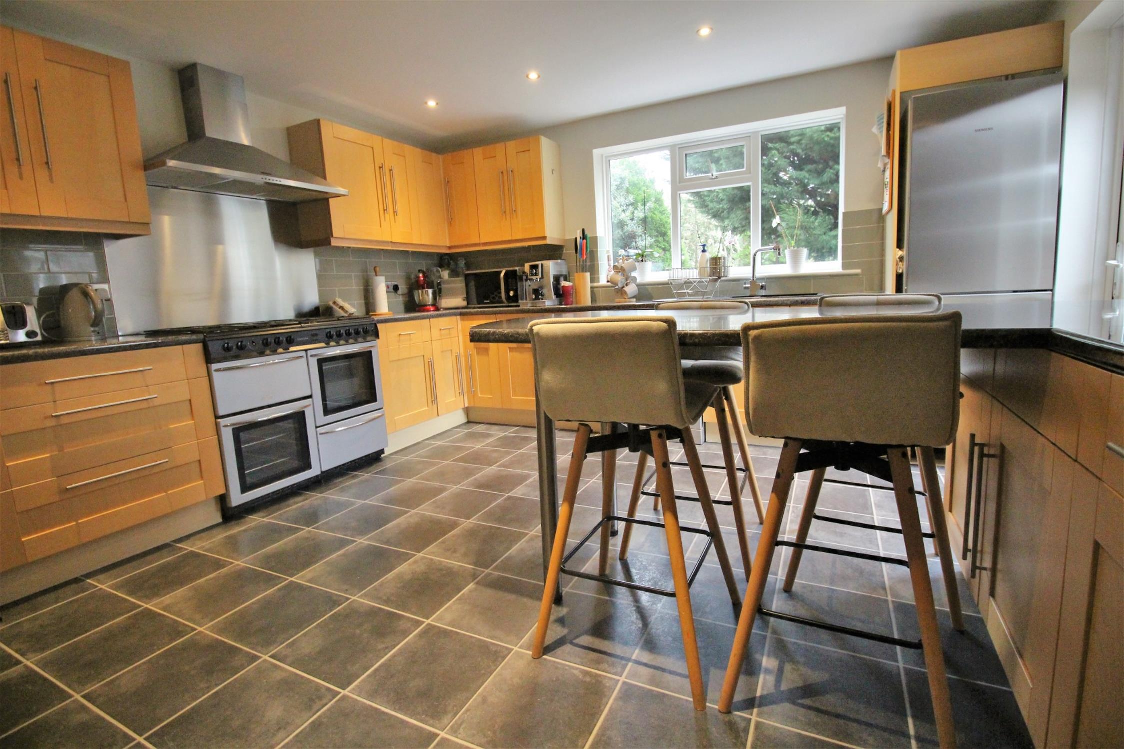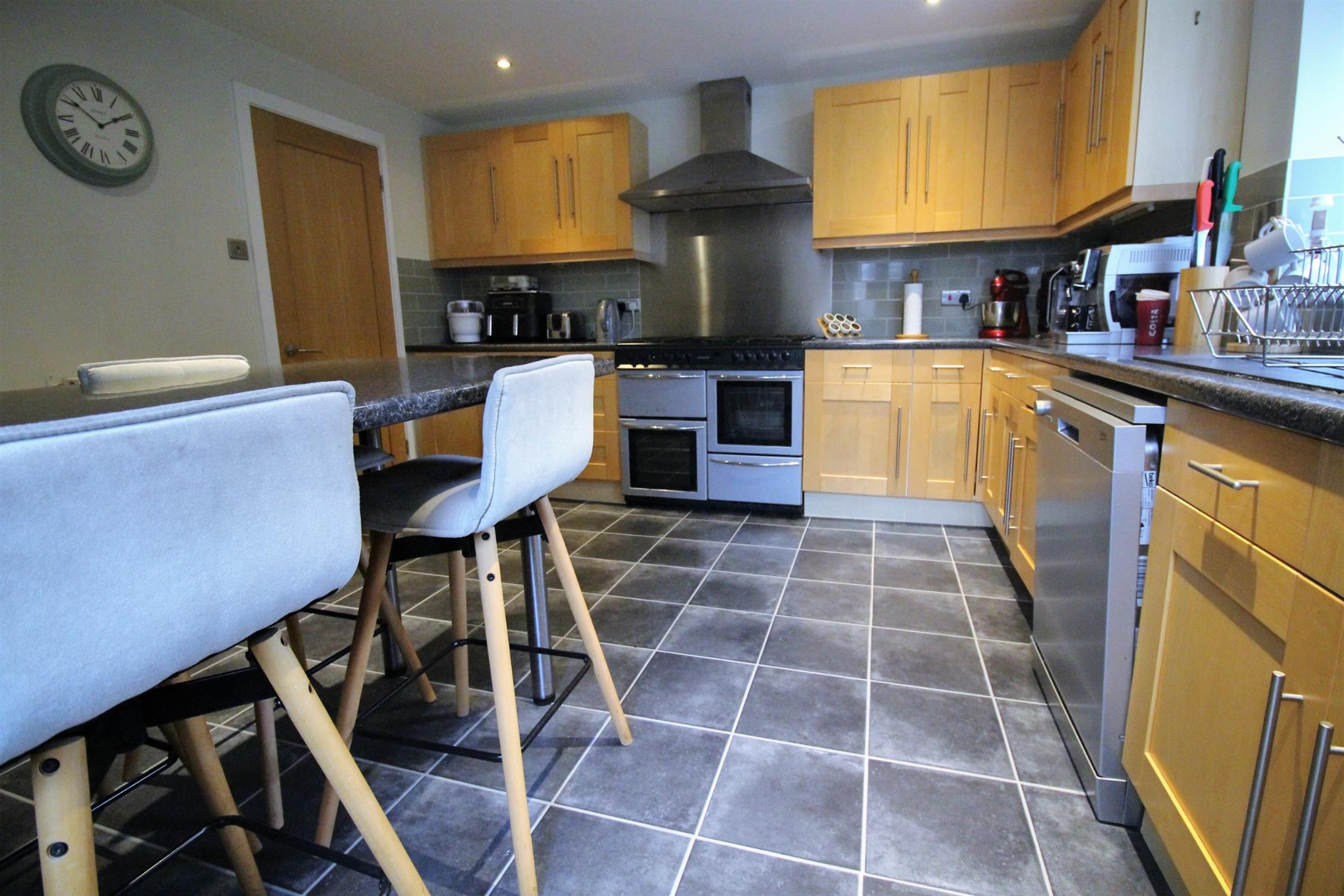 Fitted with a comprehensive range of wall and base units with work surfaces over, central breakfast bar, range cooker with extractor hood over, plumbing for dishwasher, one and half bowl sink and drainer, radiator, rear aspect double glazed window, side aspect double glazed door, door to the utility room.
