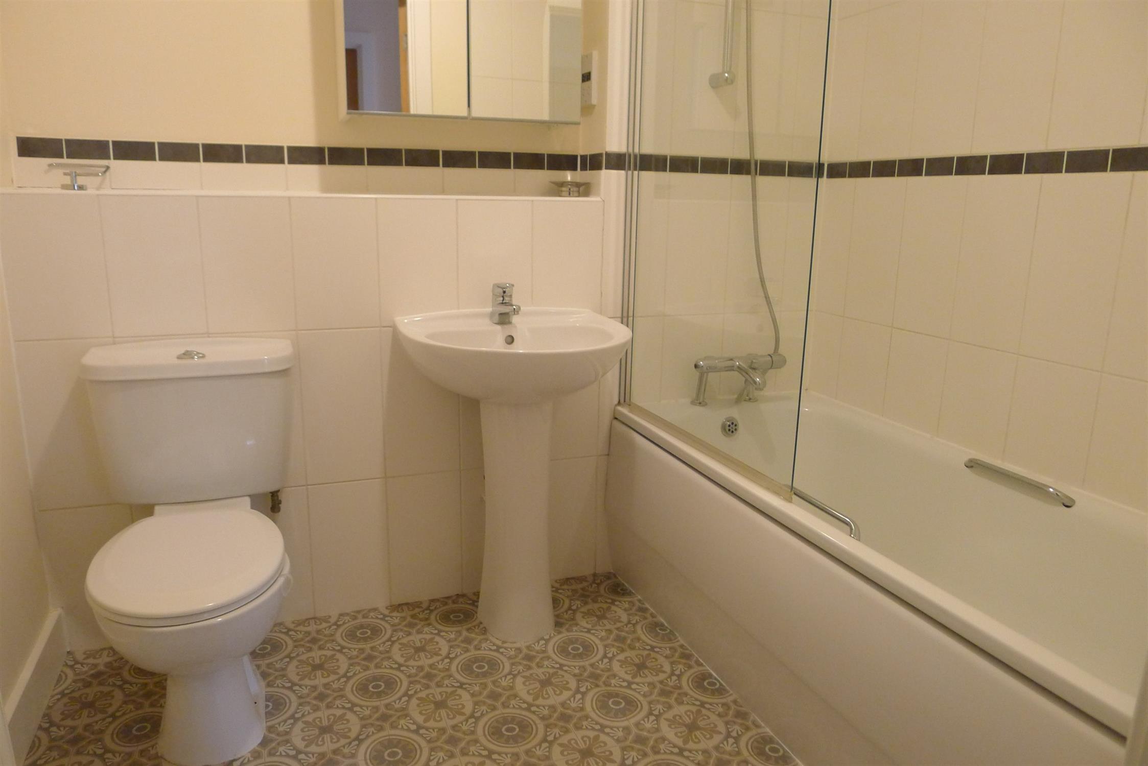 BATHROOM:- Panelled bath with shower over, low level wc, wash hand basin and radiator.