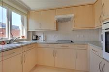 Double-glazed window to the rear elevation. A range of wall and base units with roll-top work surfaces, stainless steel sink with mixer tap, integral fridge and freezer, eye-level oven, Ceramic hob with extractor hood over, part-tiled walls, wall-mounted heater.
