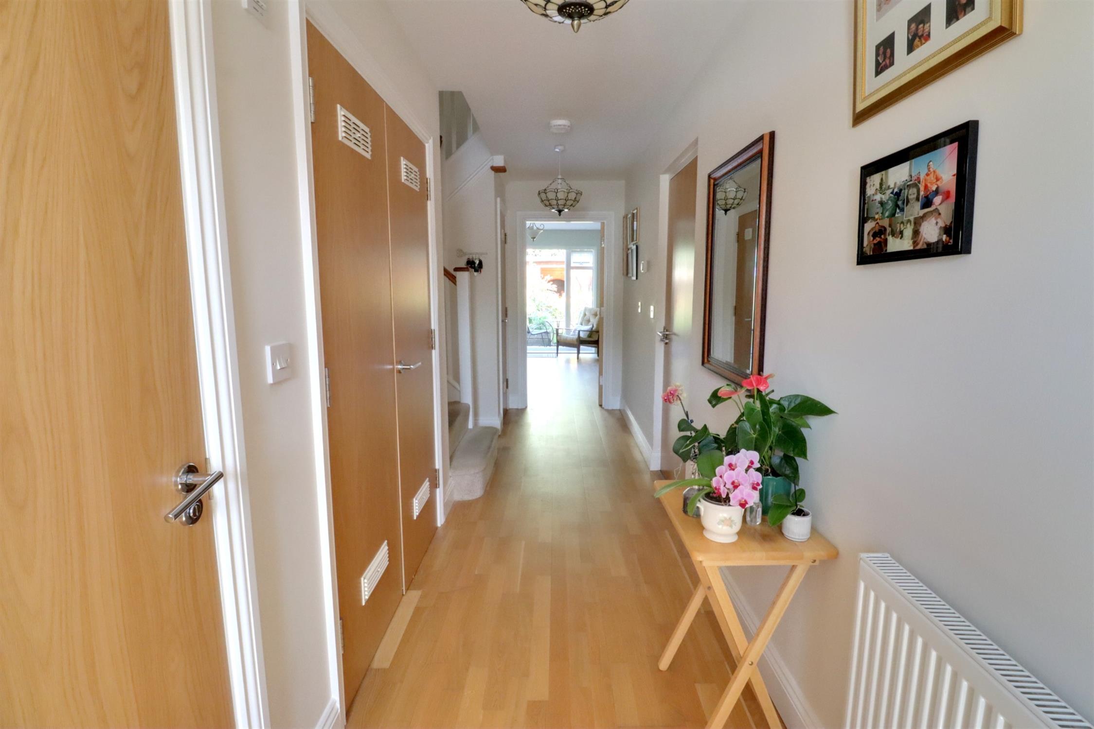 Via double glazed front door, engineered oak flooring, radiator, large built in cloaks/storage cupboard, further built in understairs storage cupboard, stairs leading to the first floor, doors to the downstairs WC, the integral garage/utility and kitchen/dining room.