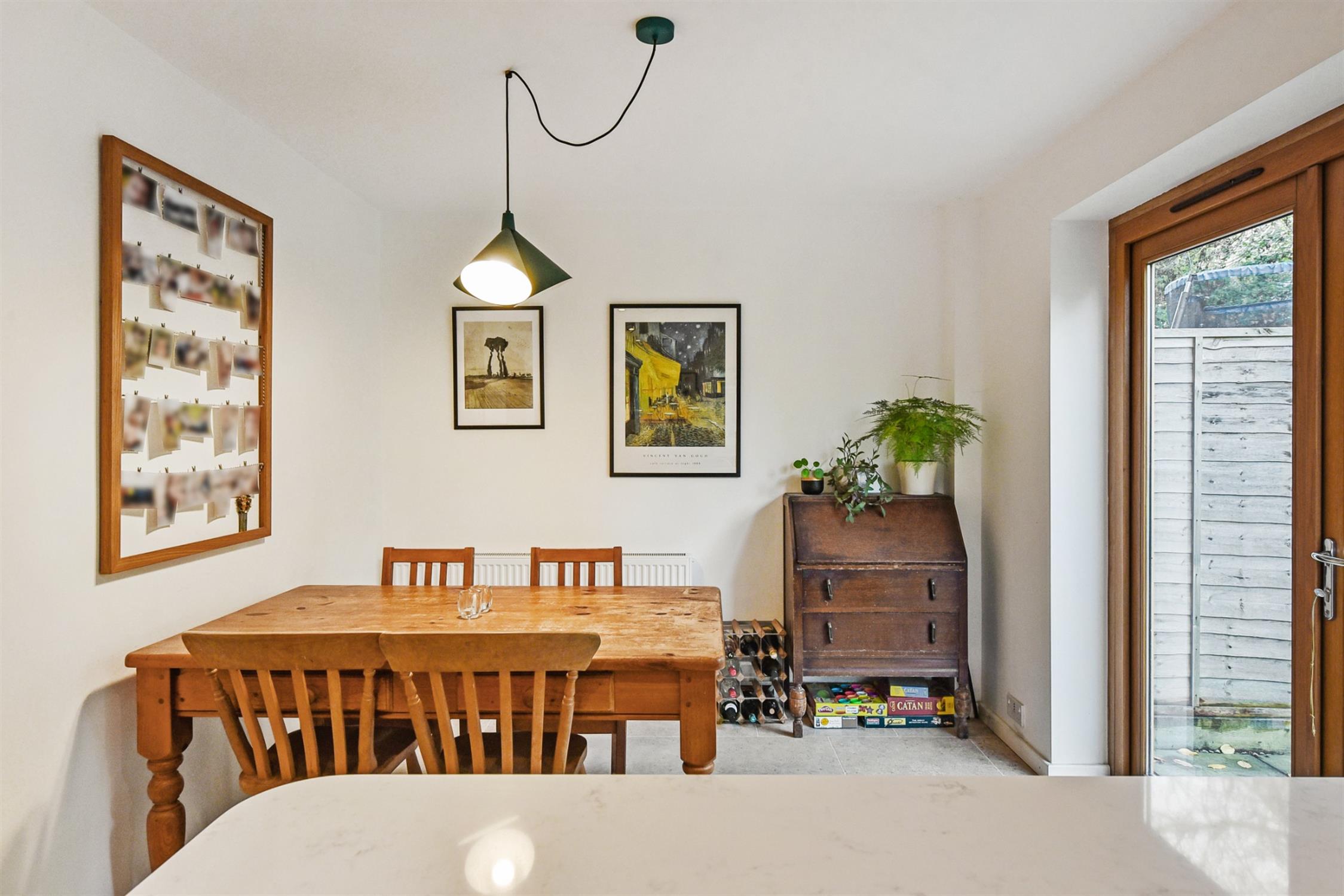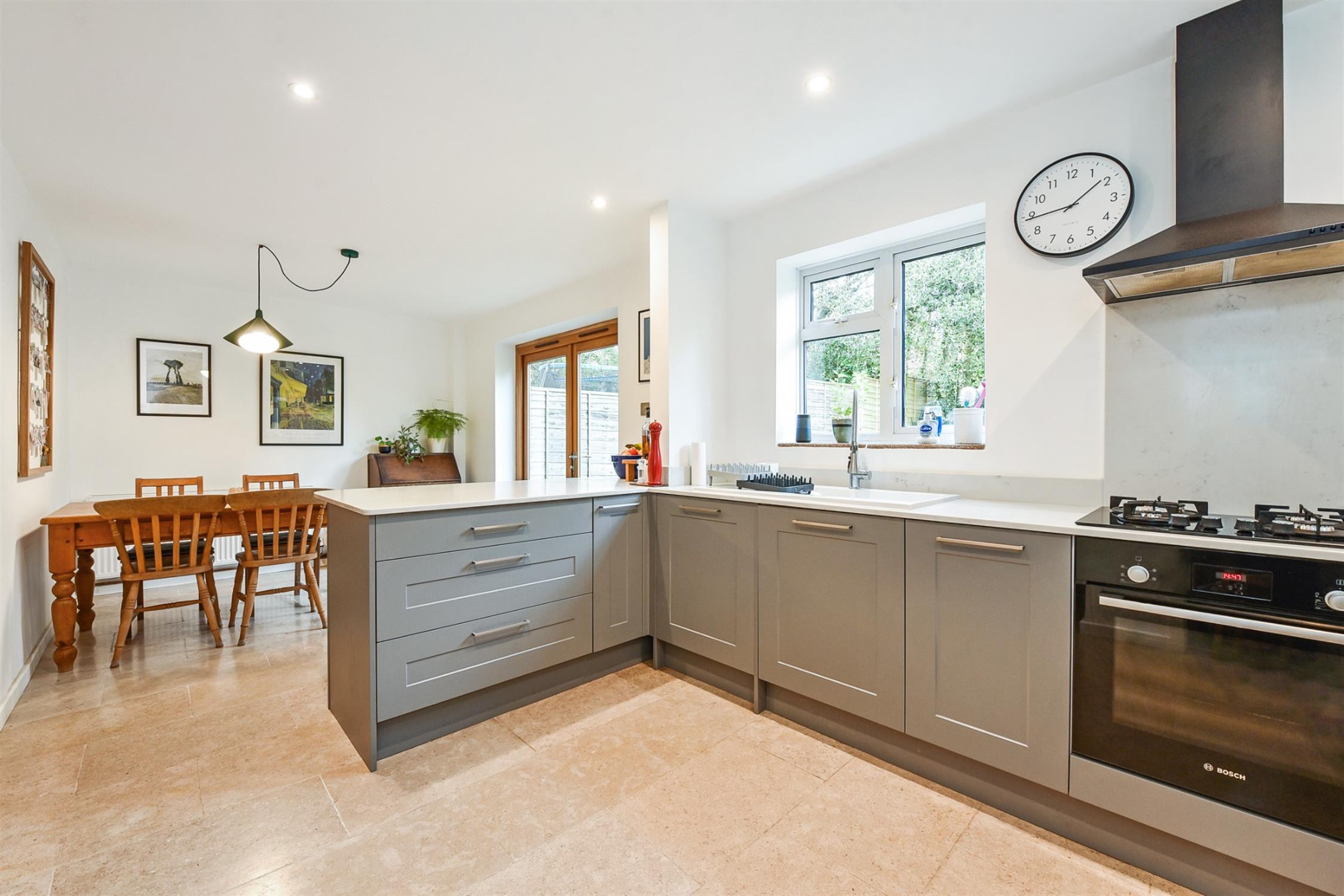 Excellent social space with high-end kitchen. Dove grey low-level units, slimline ivory quartz worktop. Porcelain inset double sink with flexi-hose tap and drainer. 4 ring gas burner. Oven. Pantry. Cupboard with meter and consumer unit. Dining area with room to dine and oak double doors to the garden.