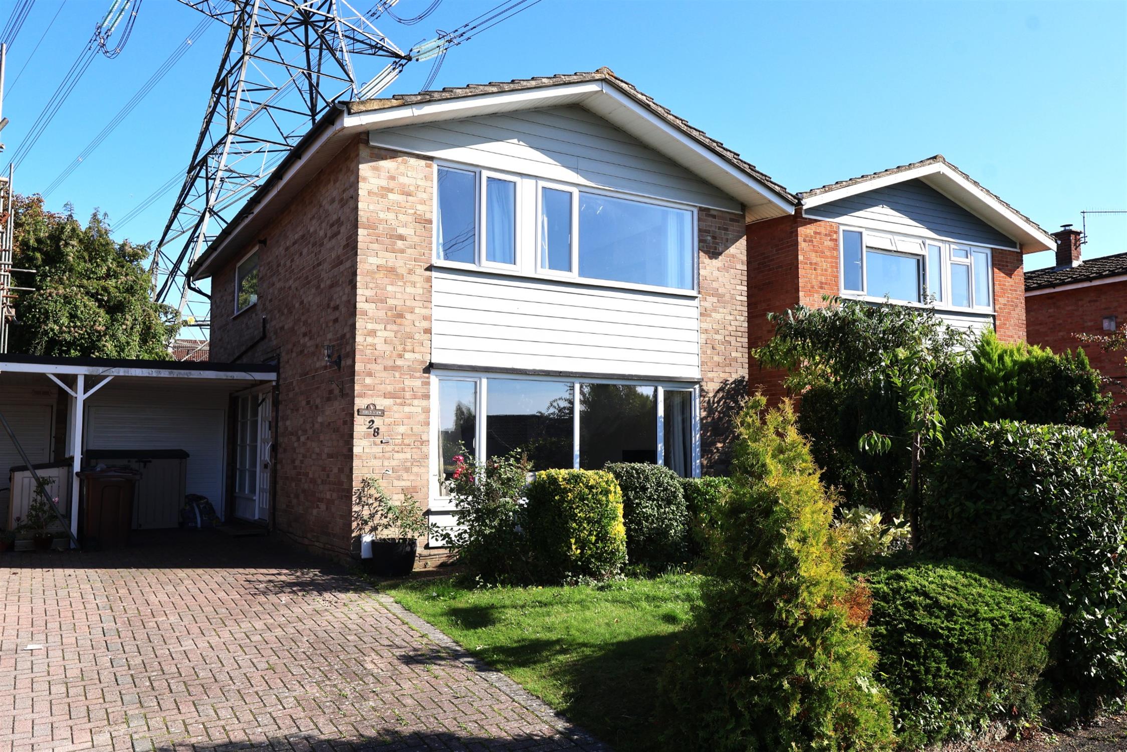 Attractive lawn garden to front with mature flower and shrub borders. Drive and parking beneath Car Port.