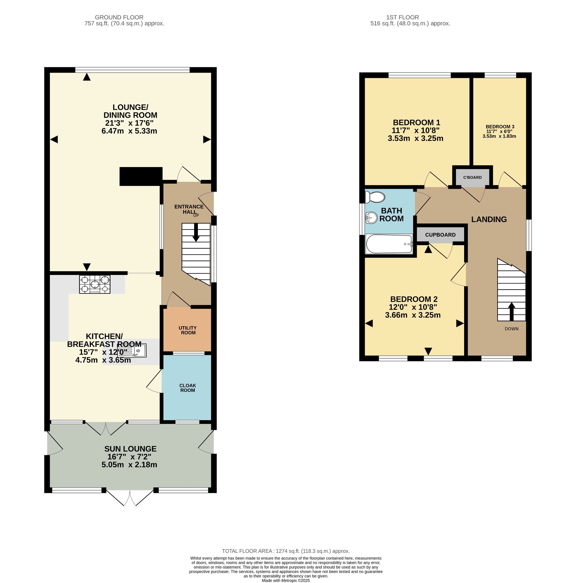Double glazed Upvc construction with French style double doors to rear garden. additional side access doors