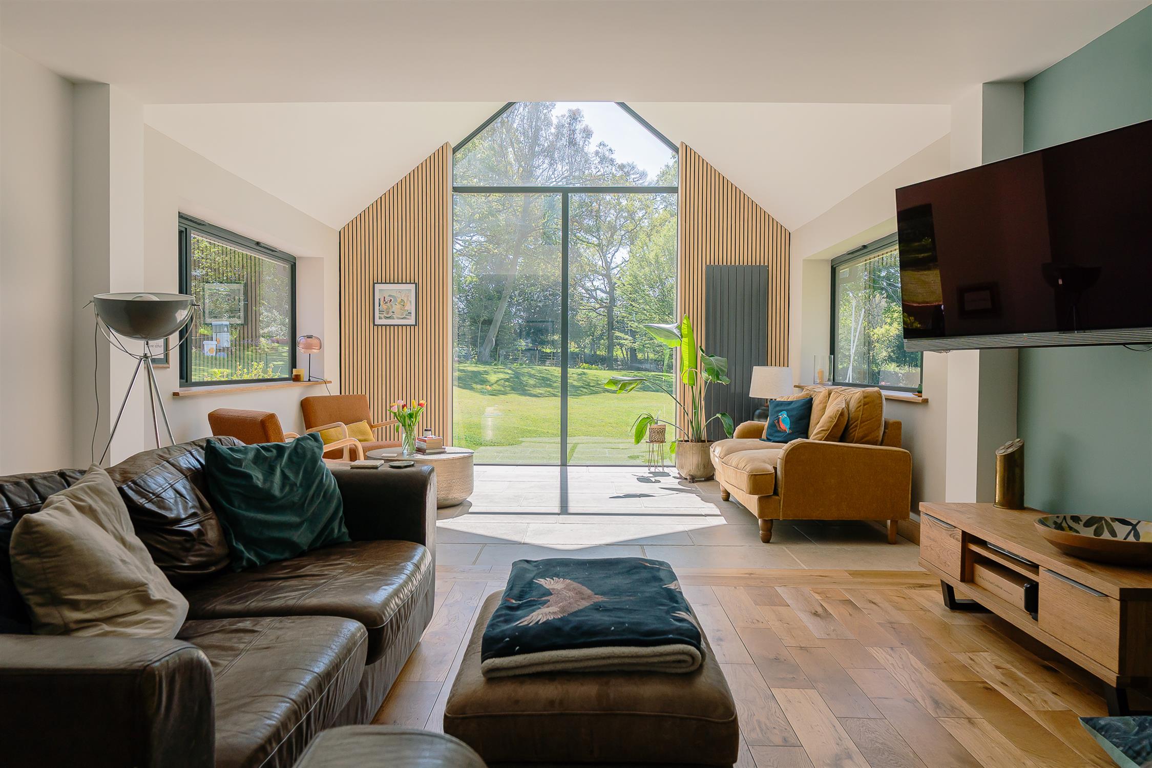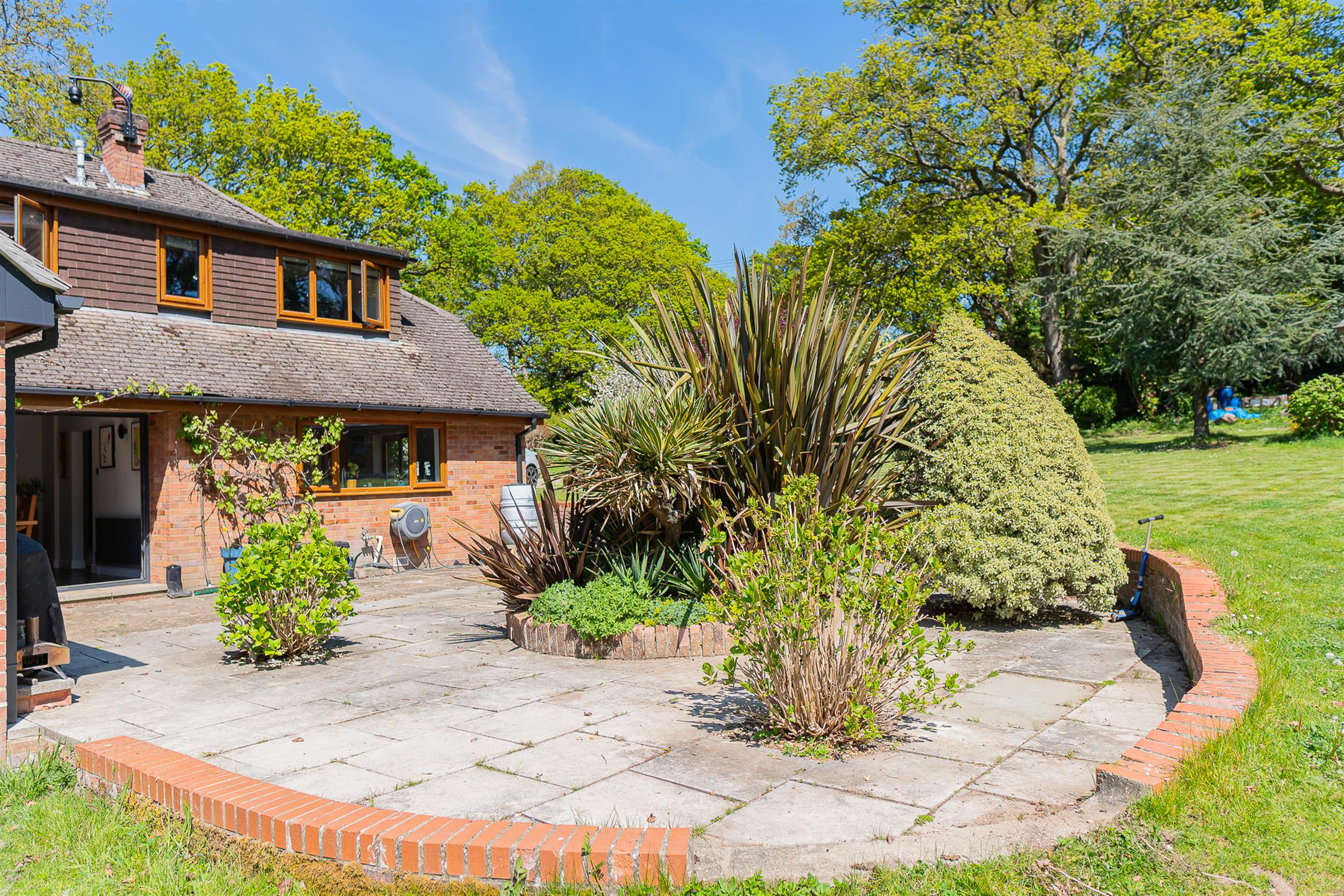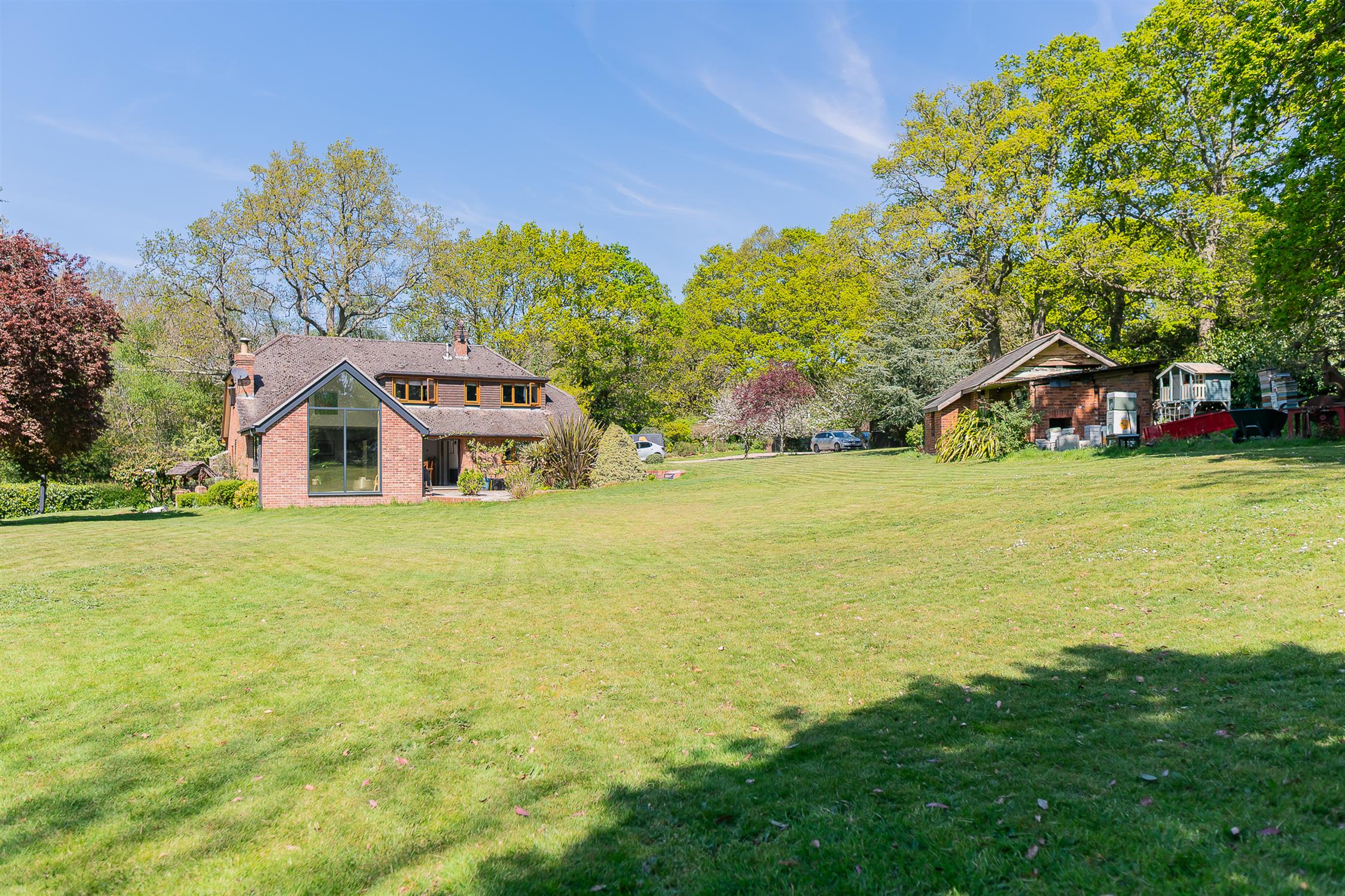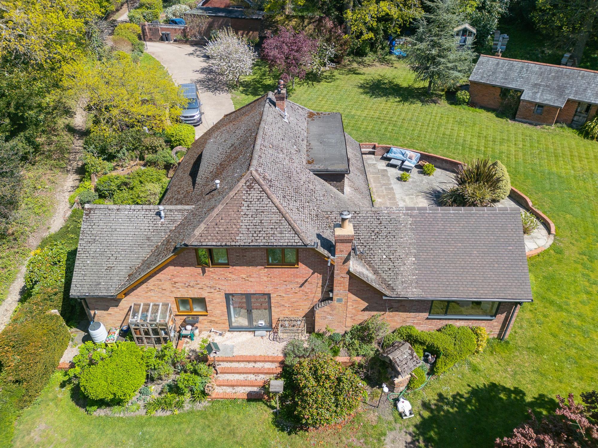 Approached from a quiet lane, the property has a large driveway with ample parking and an electric car charging point.