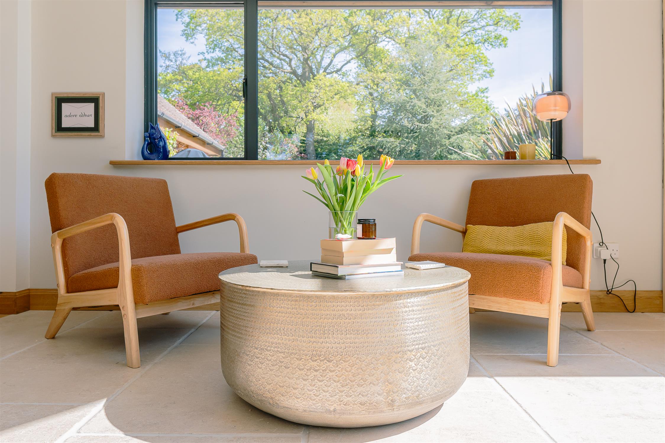 This stunning room has been extended with solid limestone and solid oak flooring. Dual aspect windows to side and large picture window to rear. Wood burning stove. Two radiators (one being vertical.)