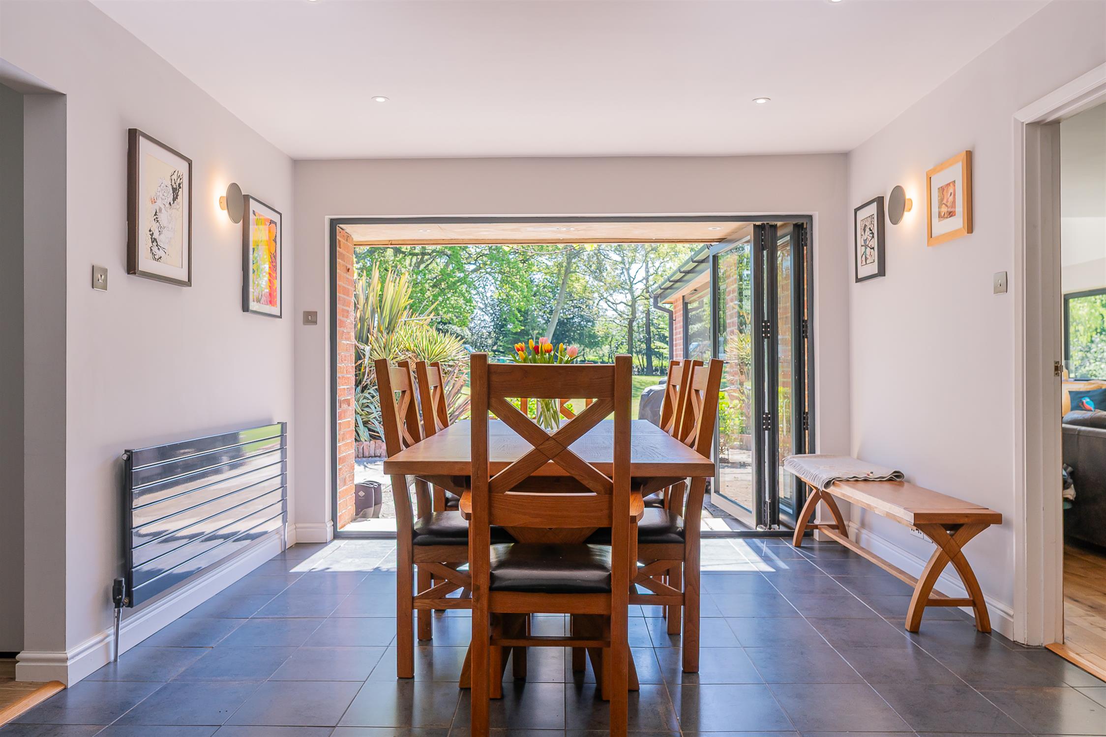 Triple bi-fold doors to garden. Ceramic tiled flooring. Radiator.