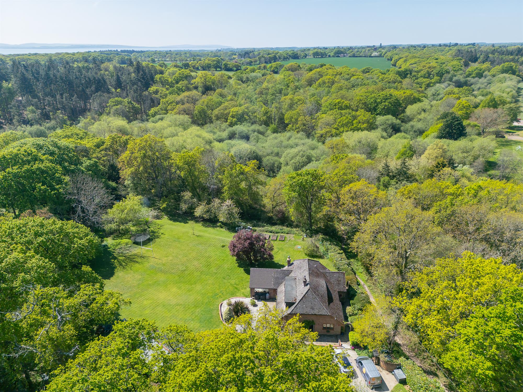 Set in the stunning surroundings of The New Forest National Park and 1 mile from Lepe Beach is this exceptional 5 bedroom detached house that has been thoroughly renovated to a high, modern specification throughout. The property offers a rare blend of natural beauty, privacy and versatile living whilst backing onto the Exbury Estate and is nestled within established grounds of approximately 1.8 acres.