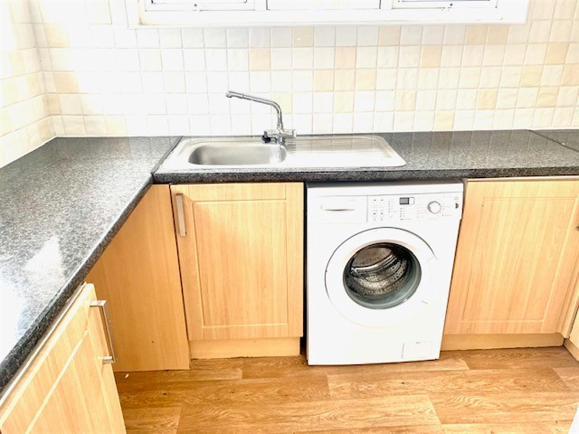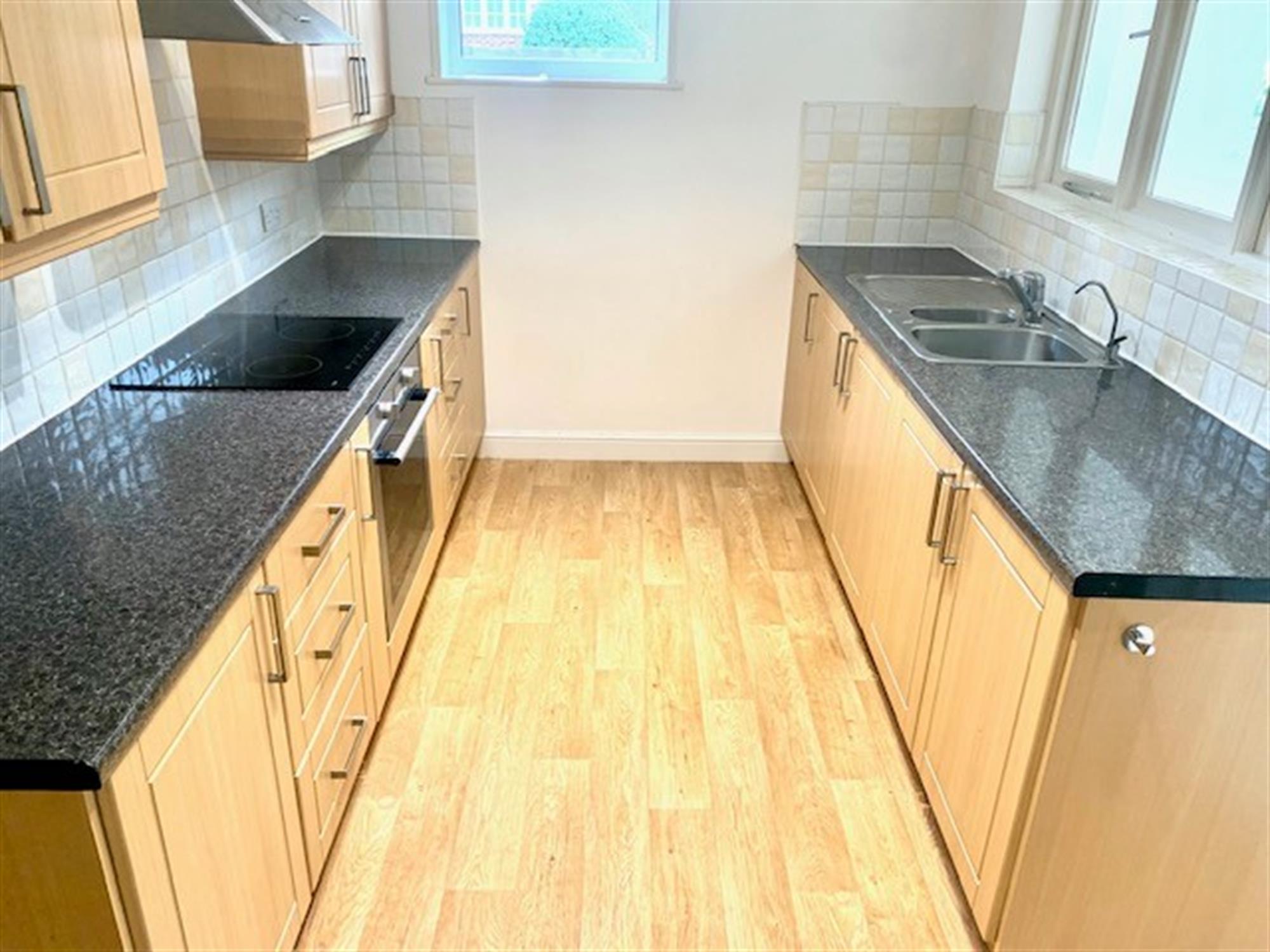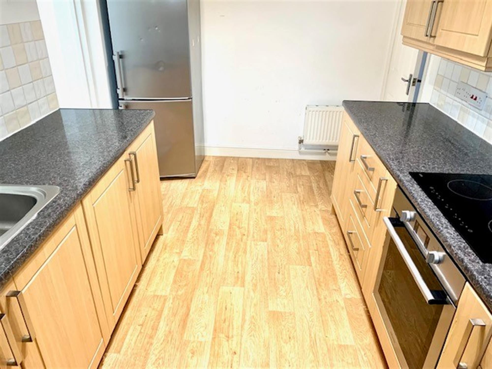 Appliances consist of electric hob, electric oven and fridge/freezer. Windows to dining room.