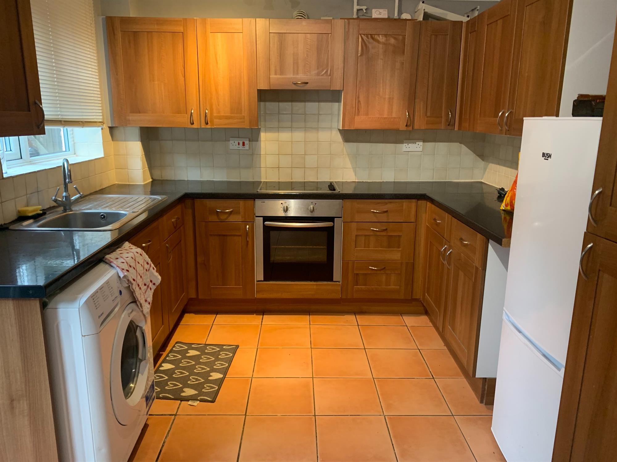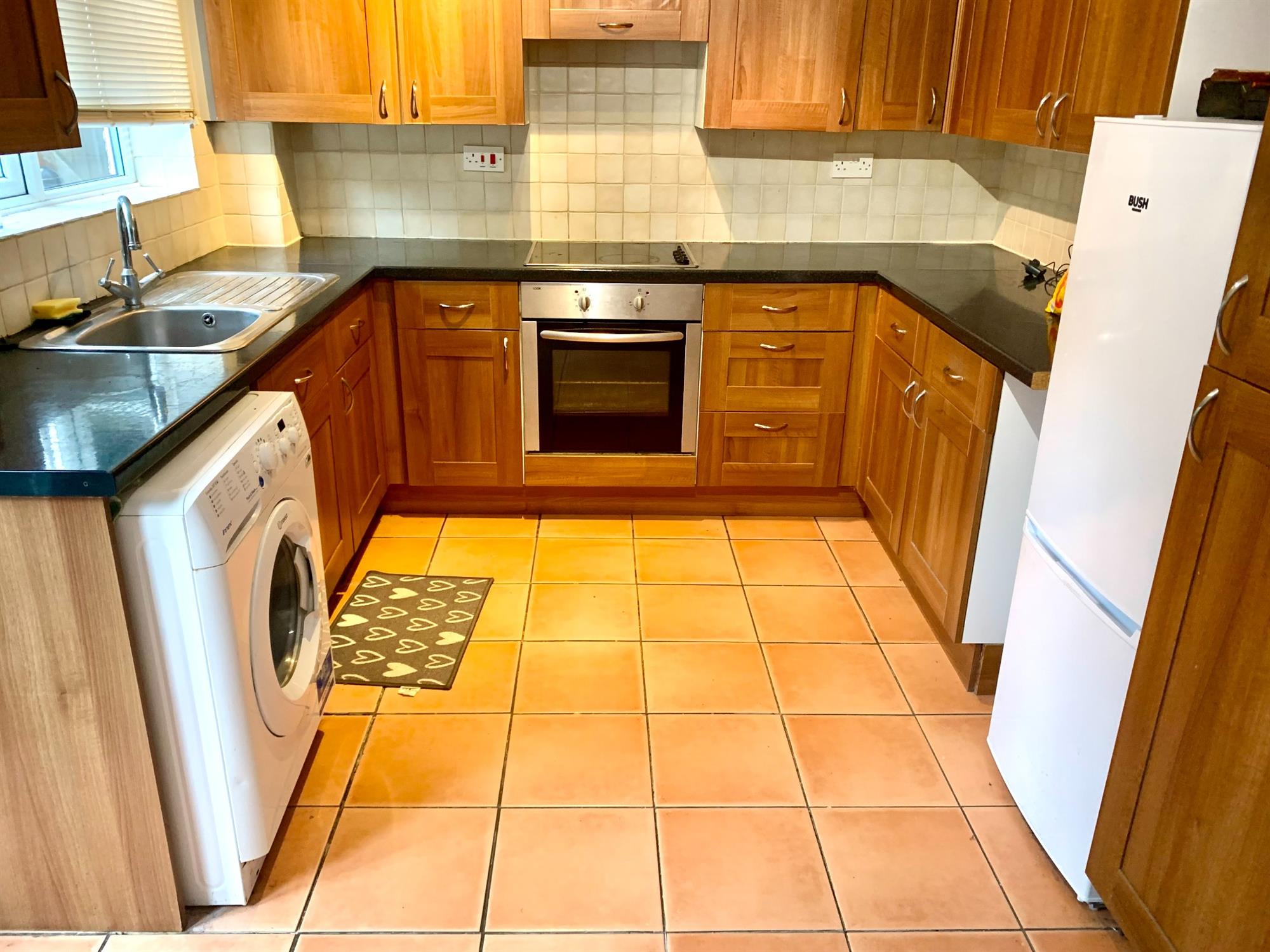 KITCHEN/BREAKFAST – Located at the rear of the property with various wall and base units with appliances consisting of: washing machine, fridge/freezer, gas hob and electric oven. The kitchen has window and door to the back garden.