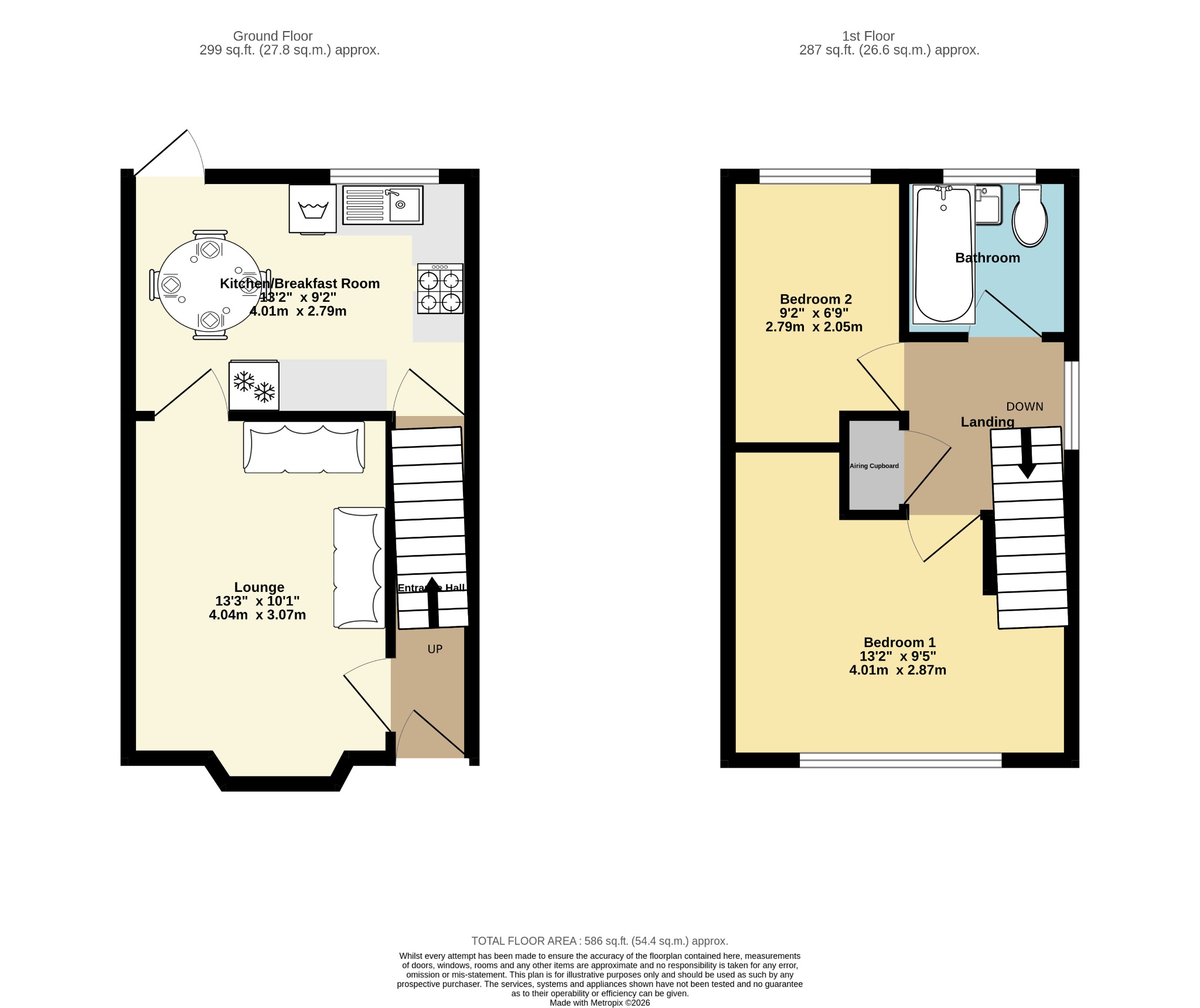 STAIRS TO FIRST FLOOR / LANDING – Carpeted flooring with window to side along with spacious airing cupboard housing water tank and storage. Doors to both bedrooms and bathroom.