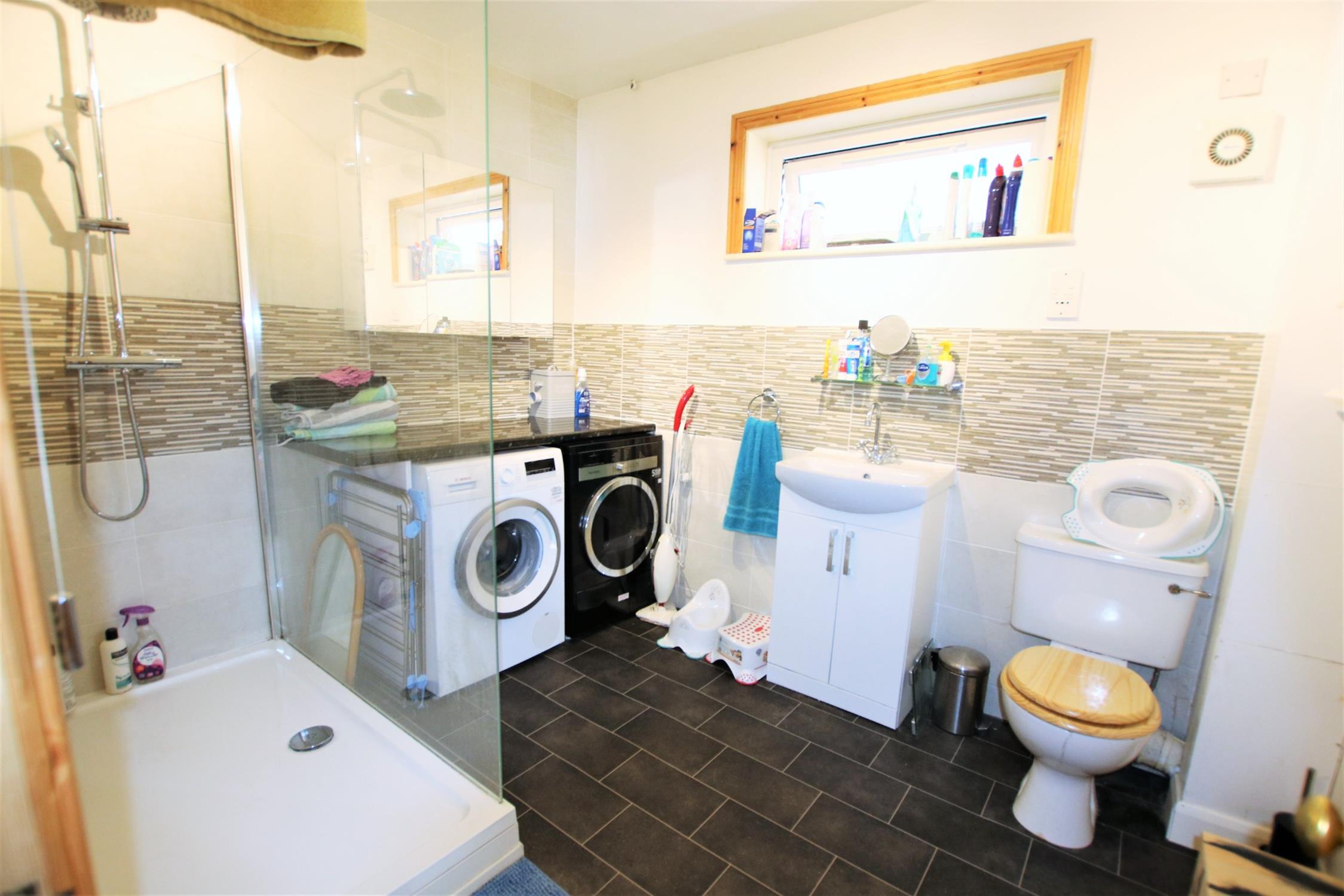 Four piece suite comprising glazed shower enclosure, low level W.C. Pedestal wash hand basin. Double glazed window to the side aspect. Space for washing machine and tumble dryer.