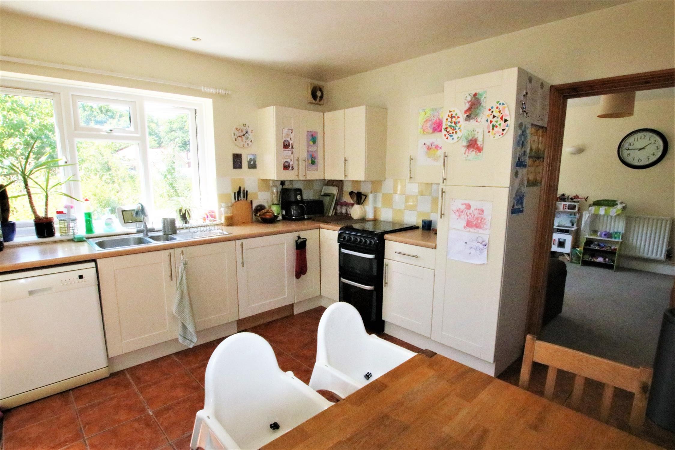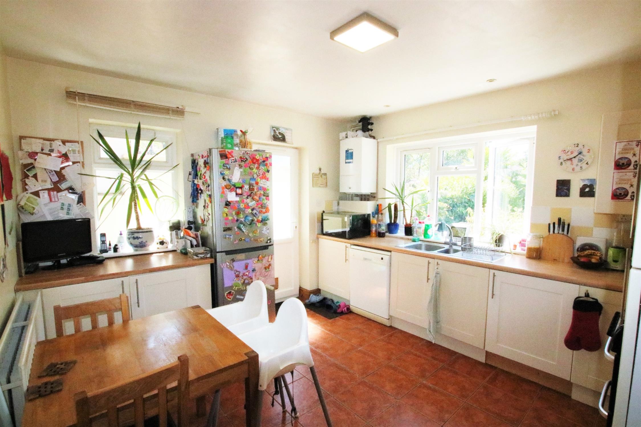 One and a half bowl stainless steel sink and drainer with mixer tap, dishwasher. Tiled floor. Double aspect room with double-glazed windows to the side and rear. Double-glazed door out onto the side. Wall mounted gas fired central heating boiler.