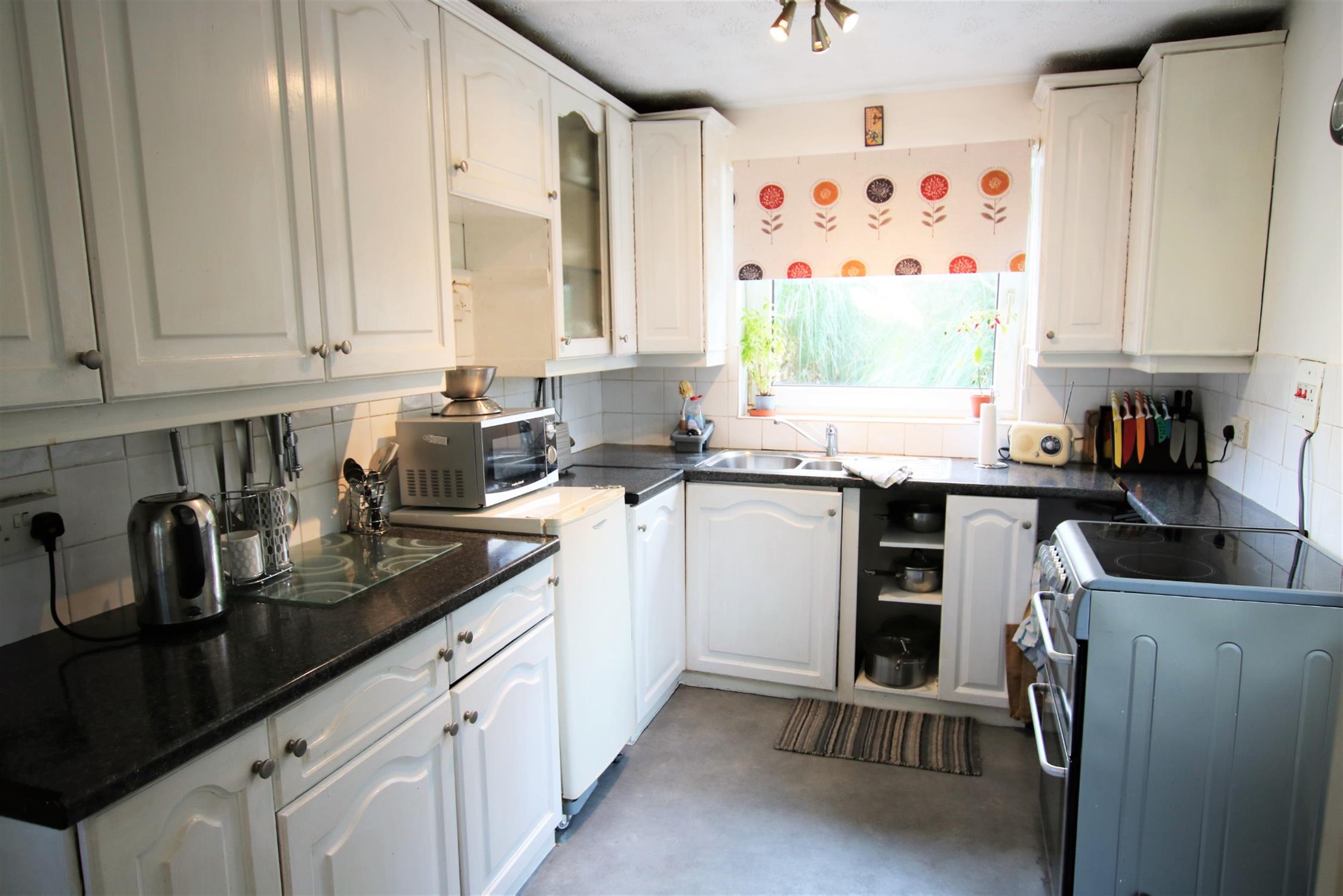 Range of white eye and base level units with roll edge work surfaces over and ceramic tiled splashbacks, uPVC double glazed windows to the rear and side aspects, stainless steel one and a half bowl sink with mixer tap over, space for cooker, space for fridge/freezer, uPVC double glazed door to the side.