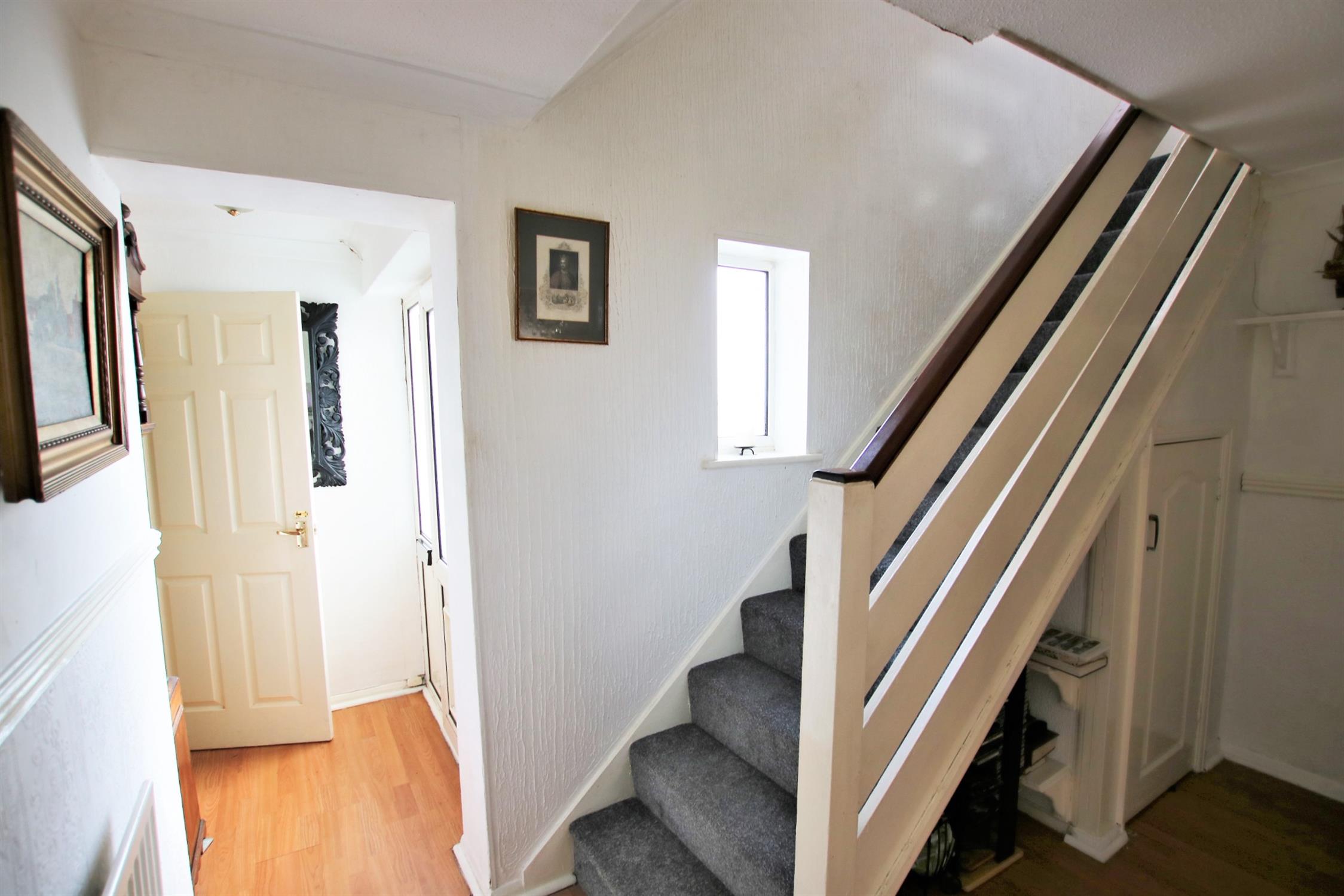 ENTRANCE HALLWAYTimber effect laminated flooring, radiator, uPVC double glazed window to the front aspect, stairs rising to the first floor, picture rail.
