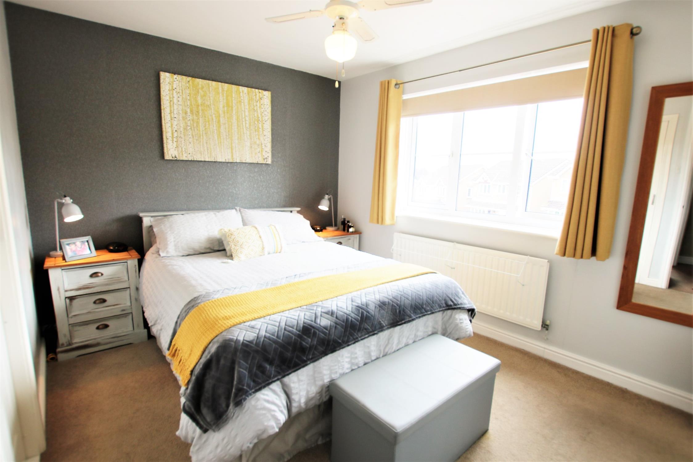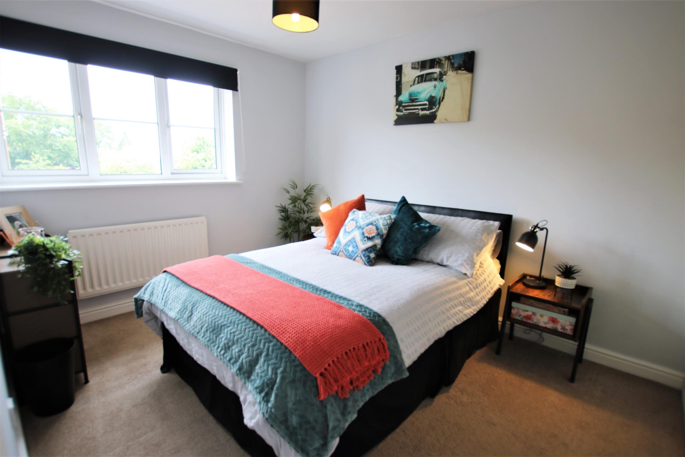 Smooth plaster ceiling, double-glazed windows to front aspect, two built in wardrobes, door leading to en suite shower room, television and various power points, radiator and fitted carpet.