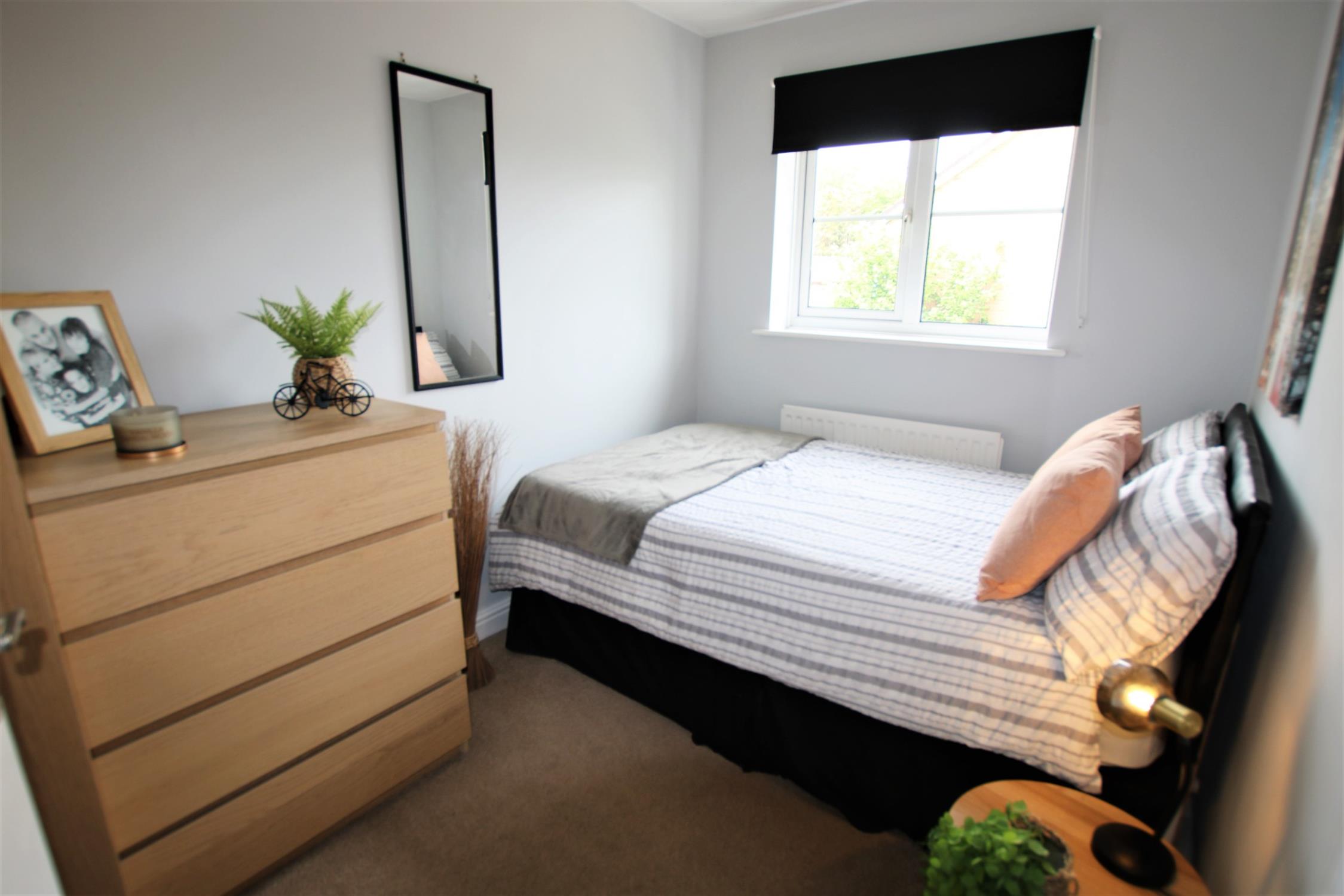 Smooth plaster ceiling, double-glazed window overlooking the rear garden, radiator, various power points and fitted carpet.