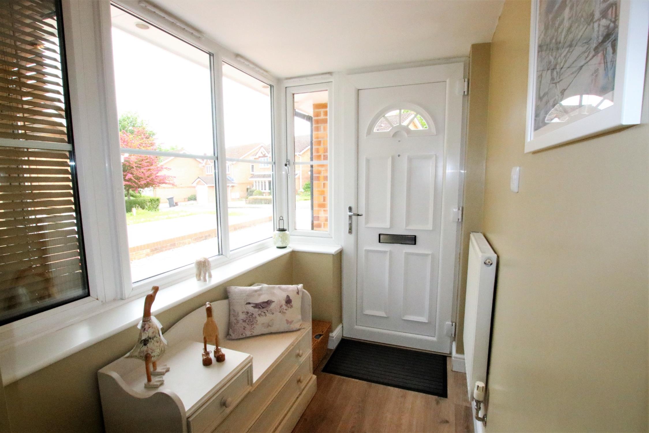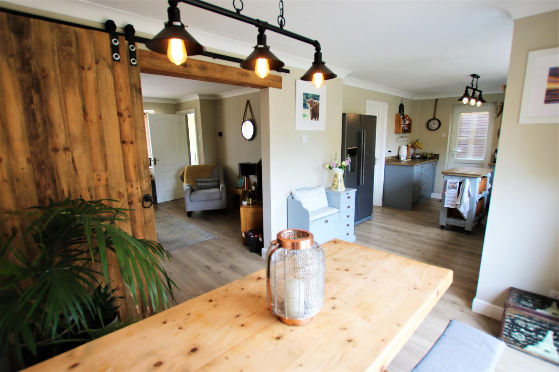 Smooth plaster ceiling, dual aspect double-glazed windows, doors leading to the sitting room, kitchen/dining room, utility room, downstairs cloakroom and garage, two radiators, stairs leading to the first floor, wood effect laminated flooring.