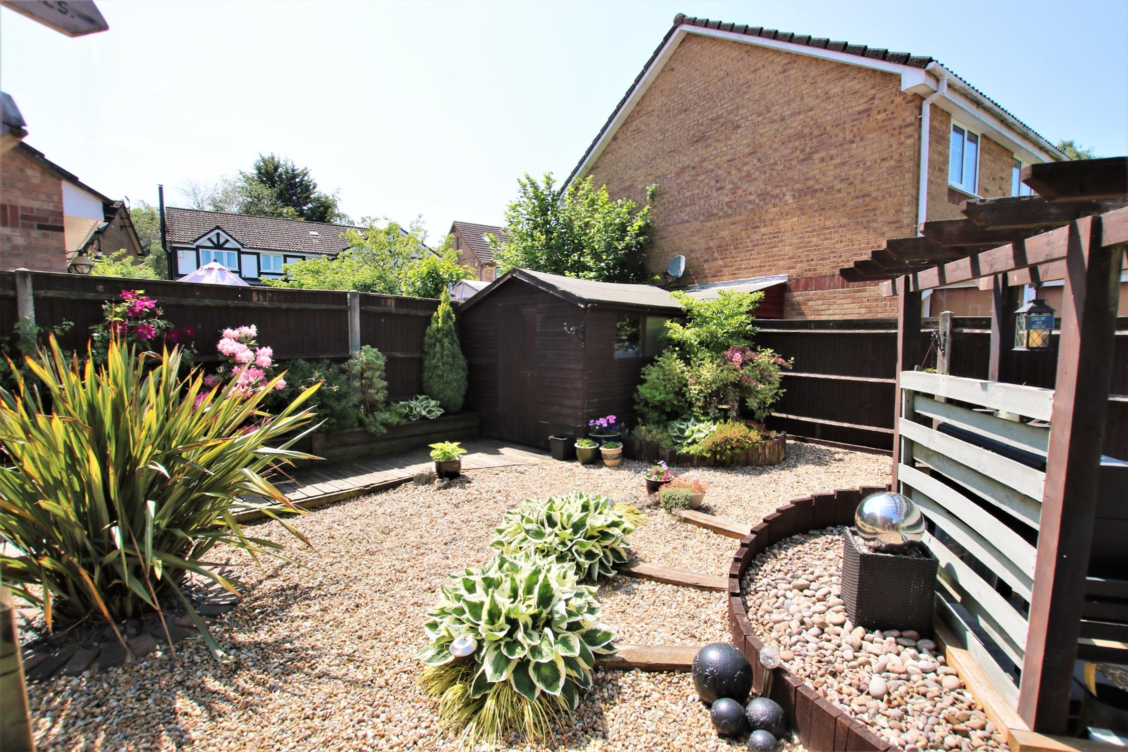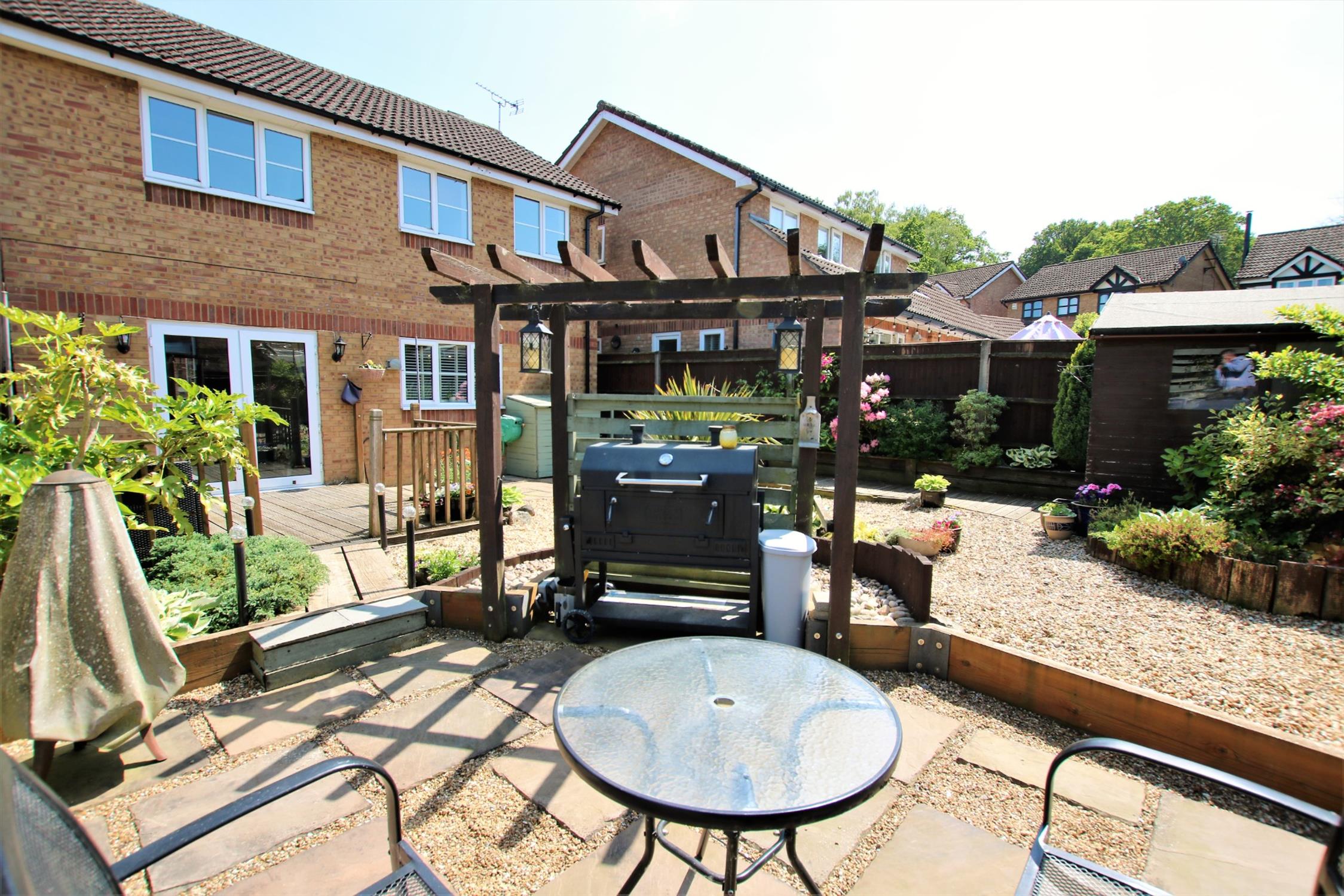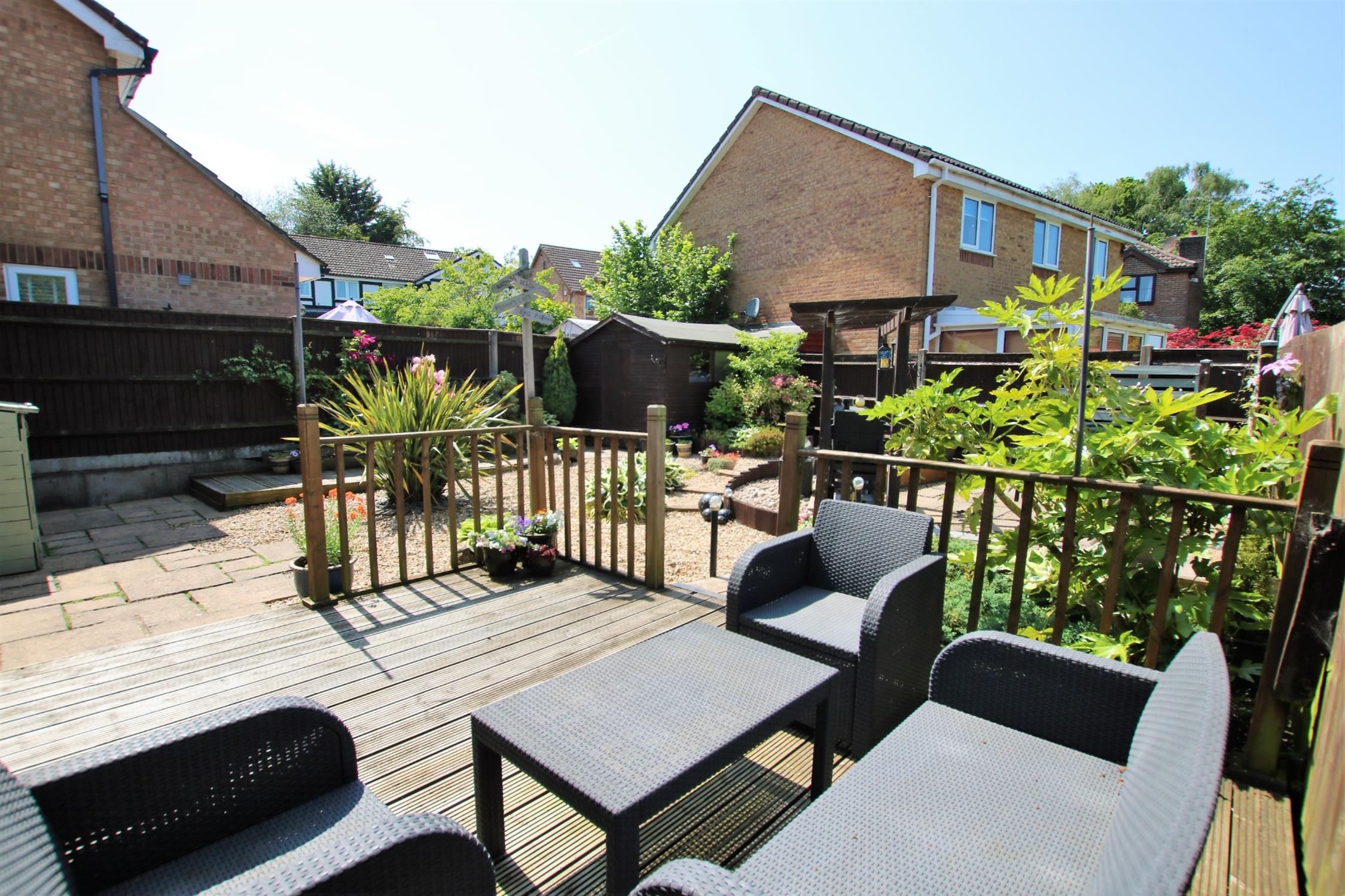 A beautifully presented, landscaped, private and enclosed rear garden which is mainly laid to attractive stone with a raised decked seating/entertainment areas, there is also a paved barbecue and seating area with a pathway leading to the gated pedestrian side access.