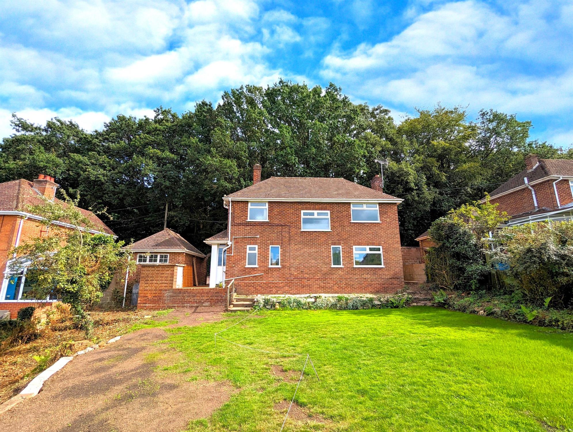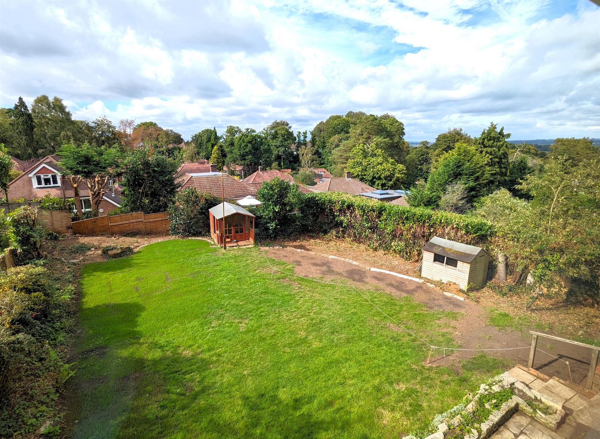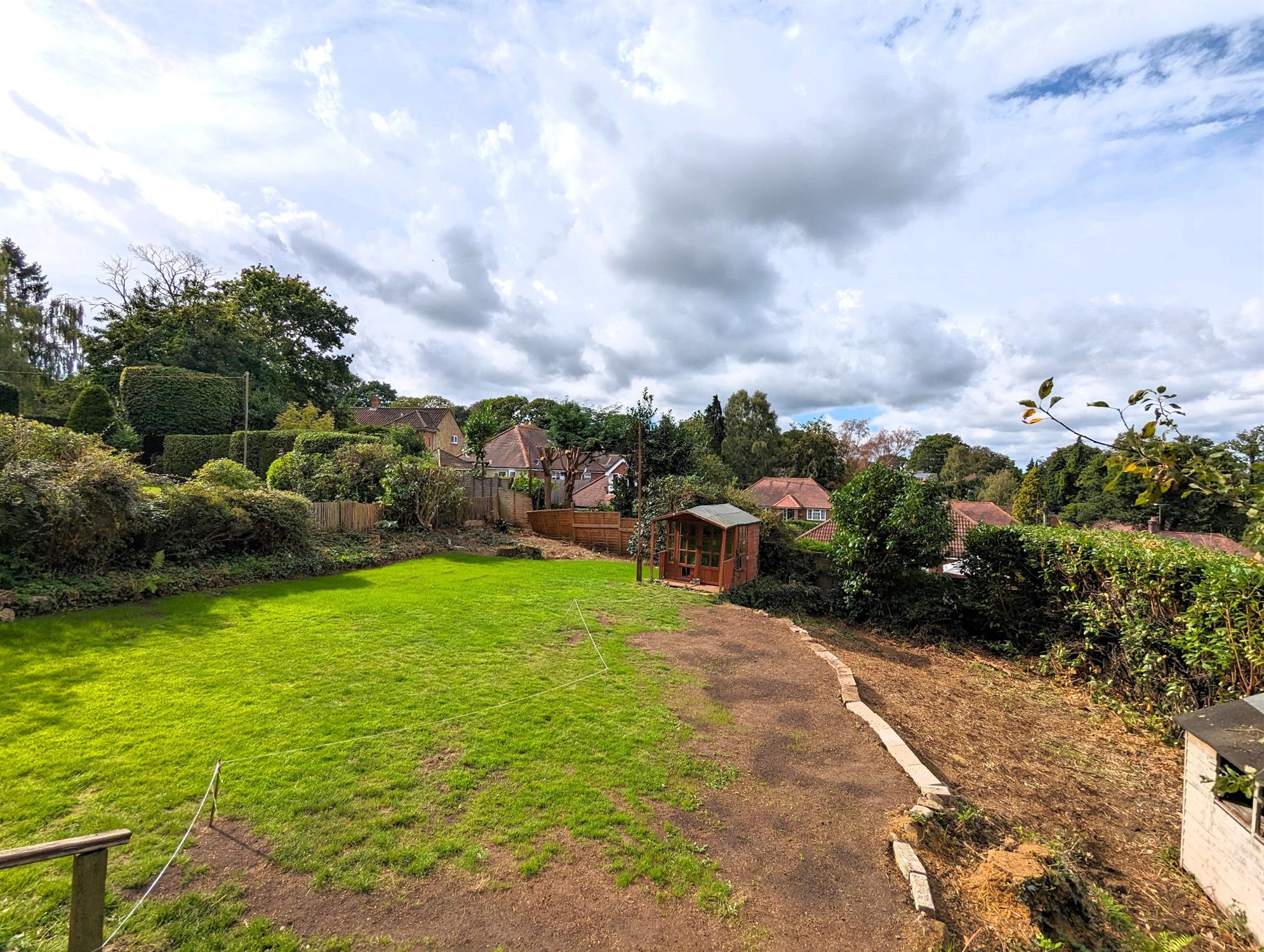 Large lawn with maturing shrub, flower borders with a westerly aspect, side pedestrian access to both side leading to the frontage.