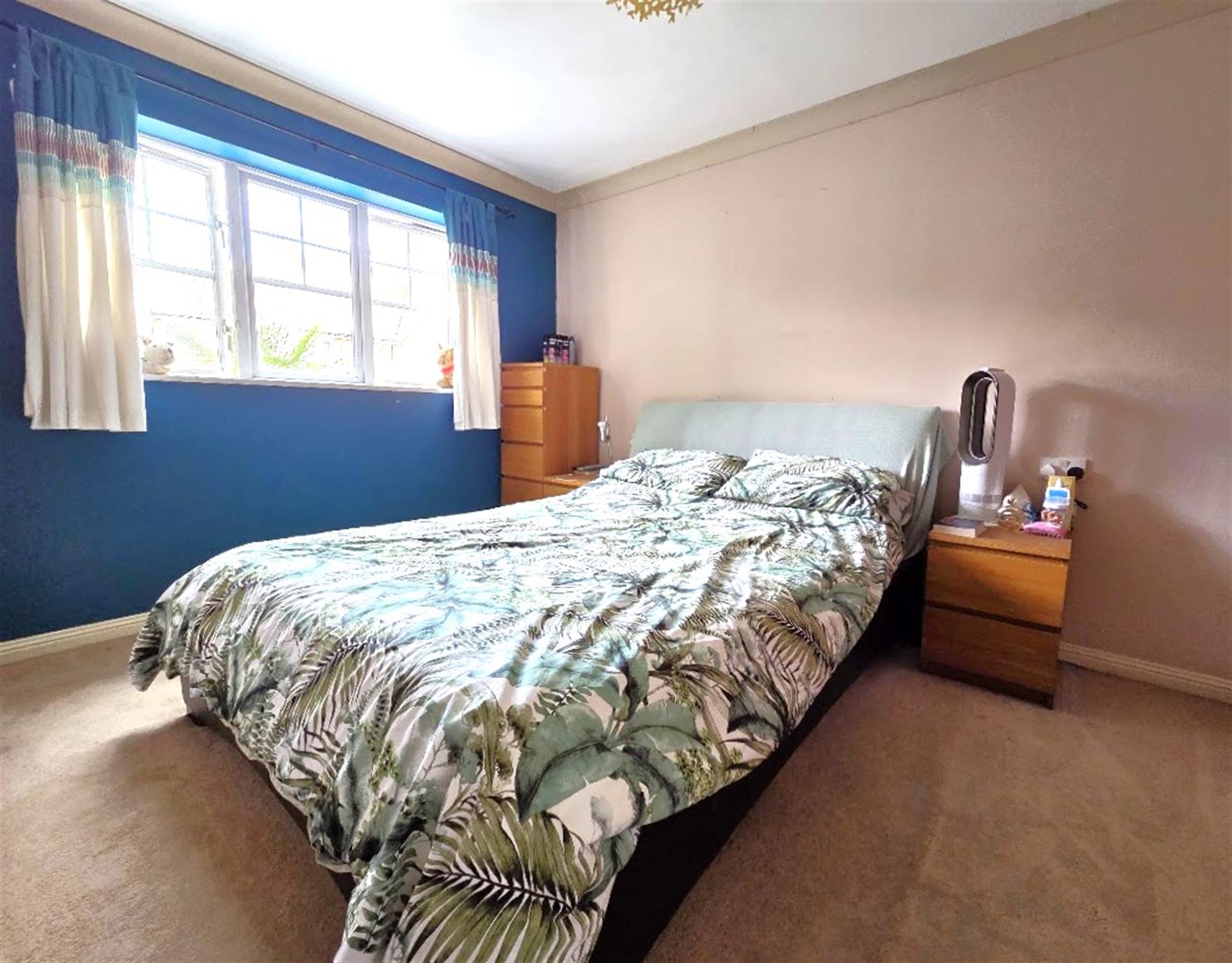 BEDROOM ONE 13' 5" (4.09m) x 9' 1" (2.77m)Double-glazed window to the rear aspect, space for wardrobes, radiator, carpeted flooring.