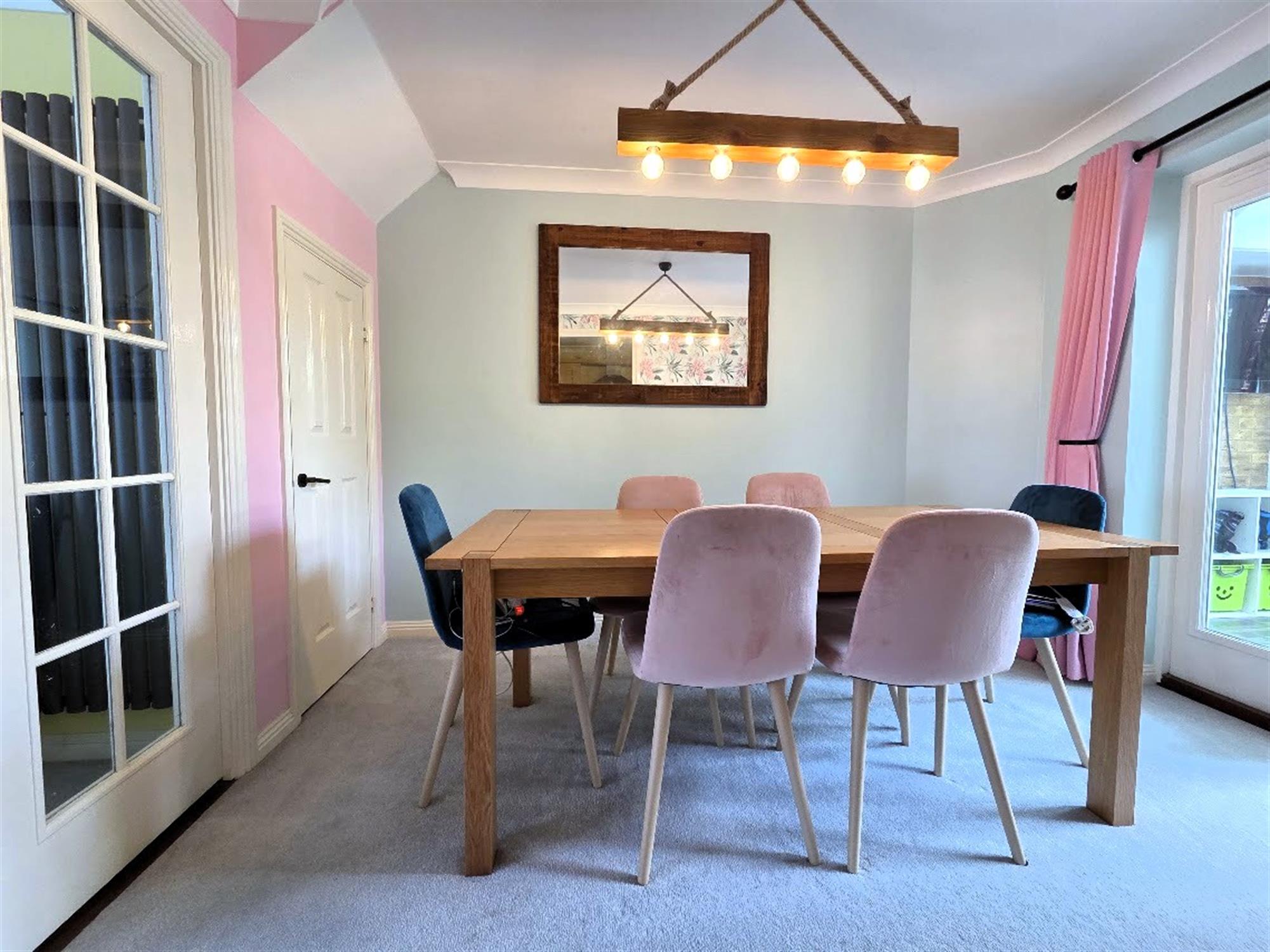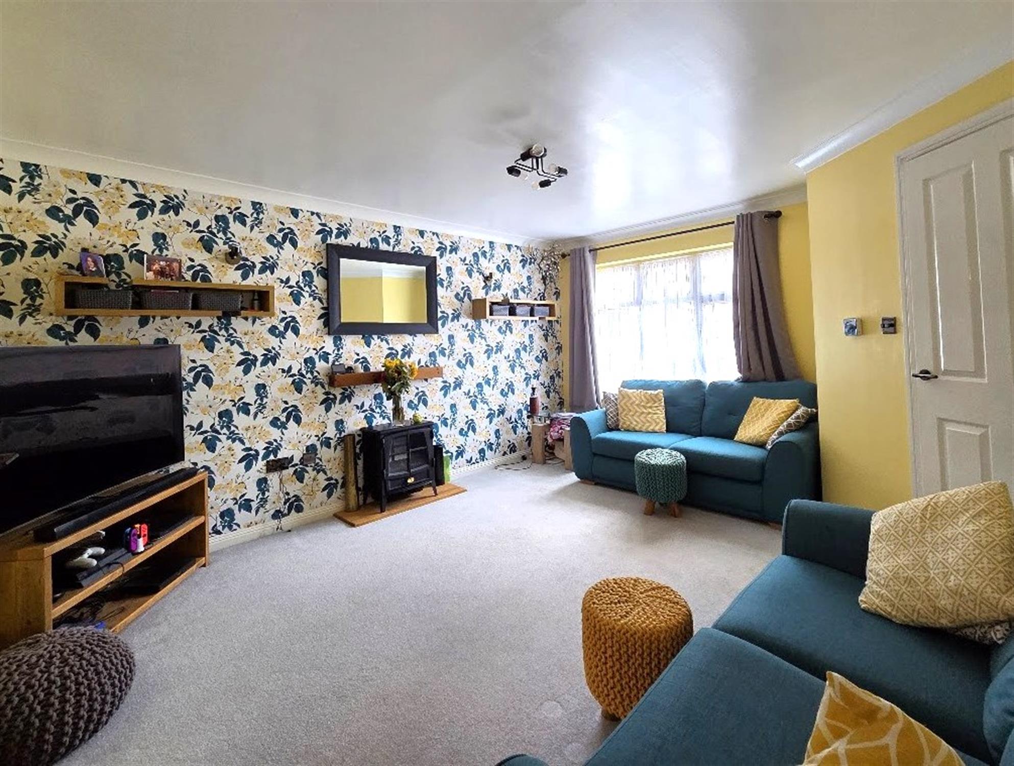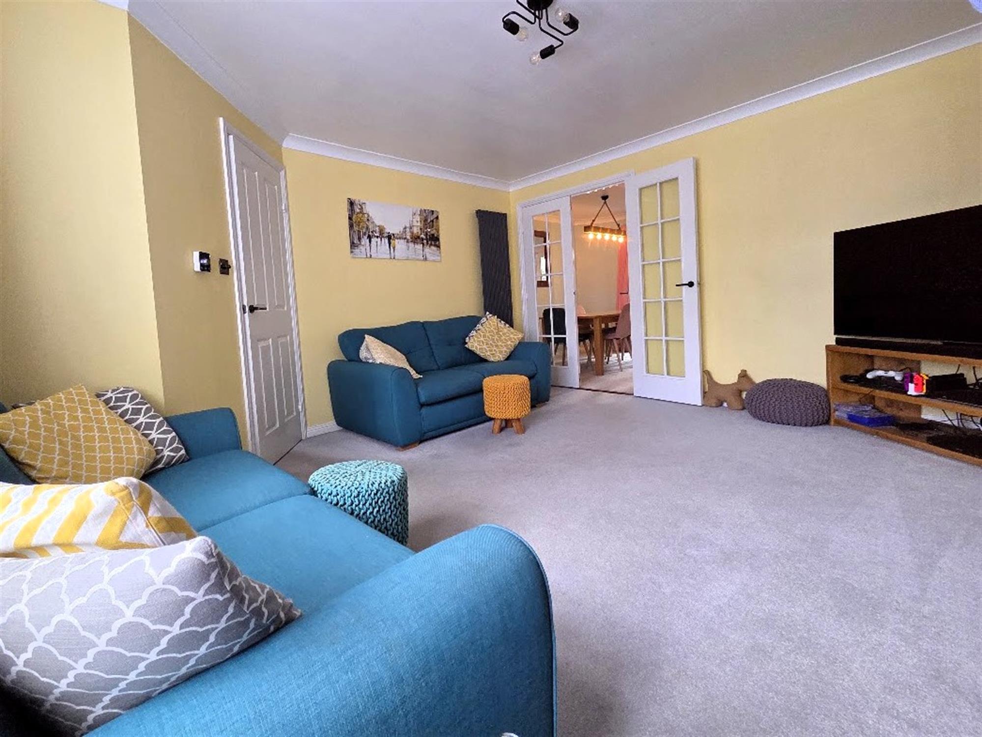 SITTING ROOM 14' 9" (4.50m) x 12' 6" (3.81m)Double-glazed window to the front aspect, radiator, TV Aerial point, Satellite point, radiator, carpeted flooring, twin-glazed doors to: