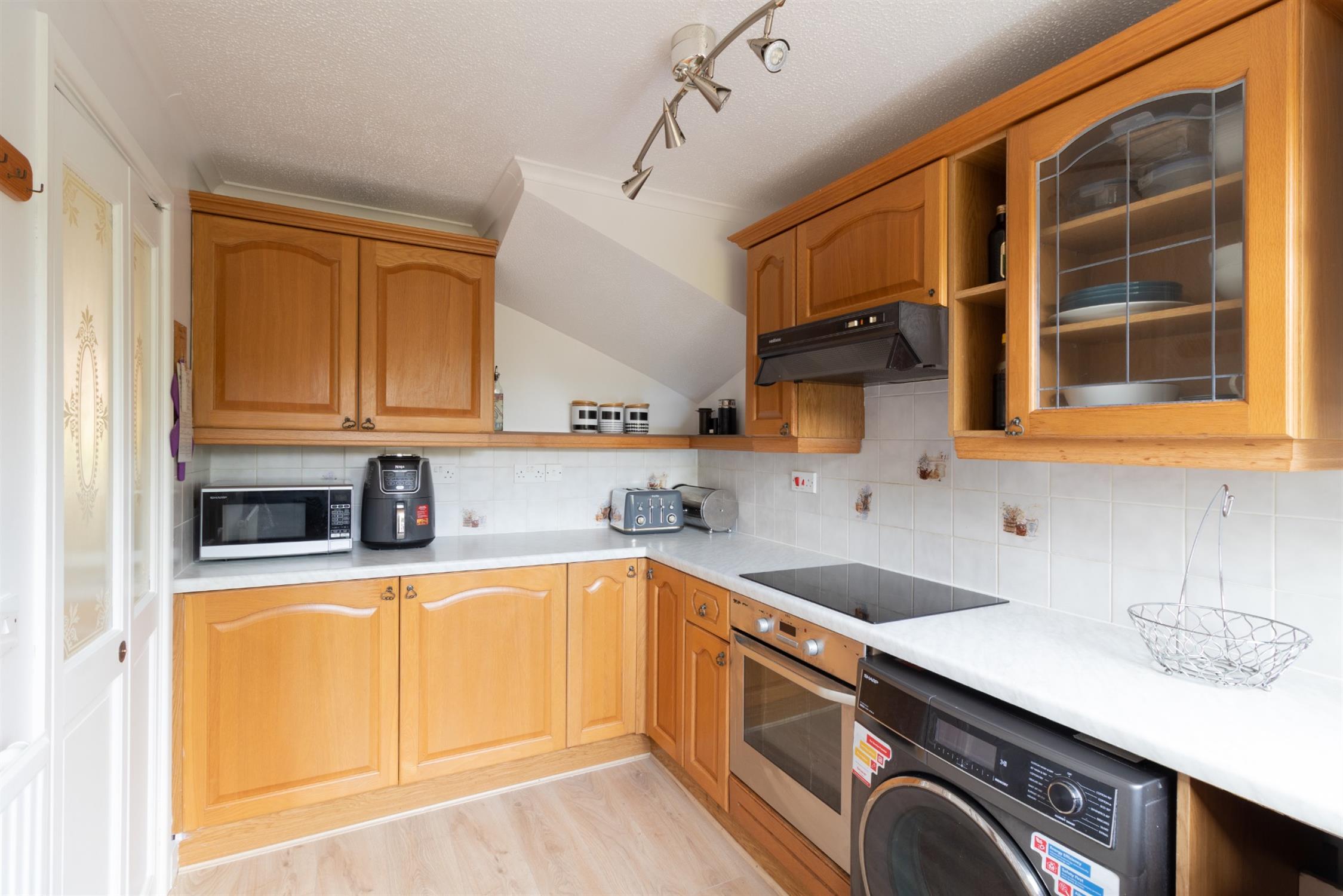 Double-glazed window and door to rear garden, full array of wall and base units, fitted worktop's with cupboard's and drawer's below, built in electric cooker with four ring electric hob, one and a half bowl sink unit, plumbing for washing machine, tiling, radiator.