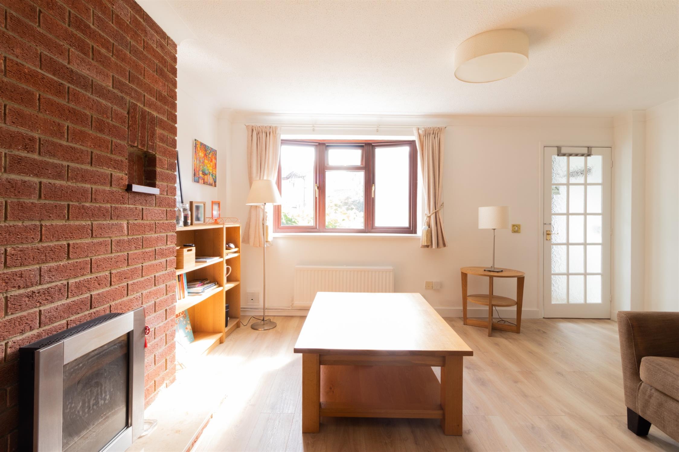 Double-glazed window to front aspect, stairs to first floor, radiator, fireplace surround with gas fire.