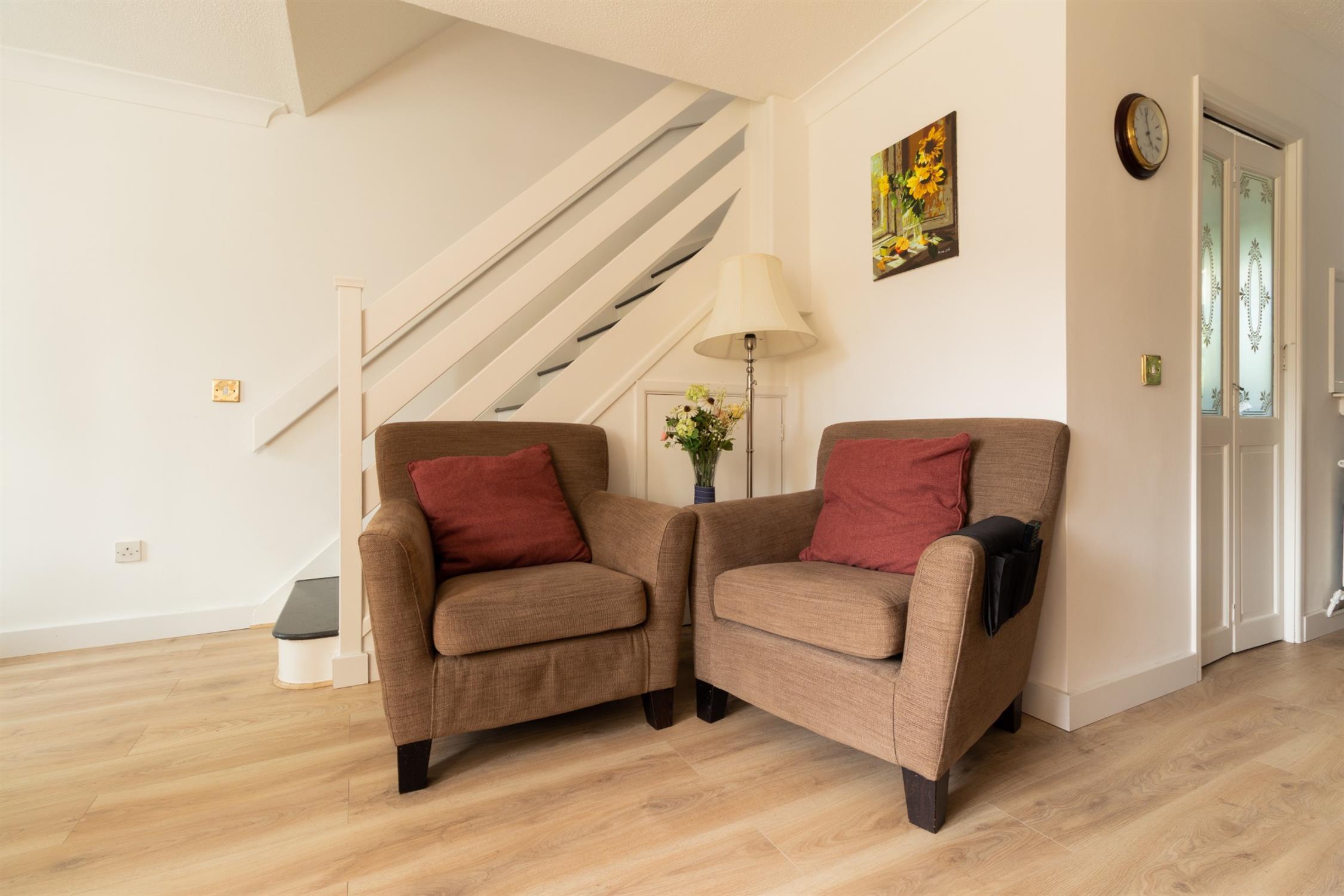 The rear garden is fully enclosed and features a large patio area with stairs leading down to a private lawned area, providing an ideal space for outdoor entertaining. This charming home in Chartwell Green offers a perfect blend of comfort and convenience in a desirable location.