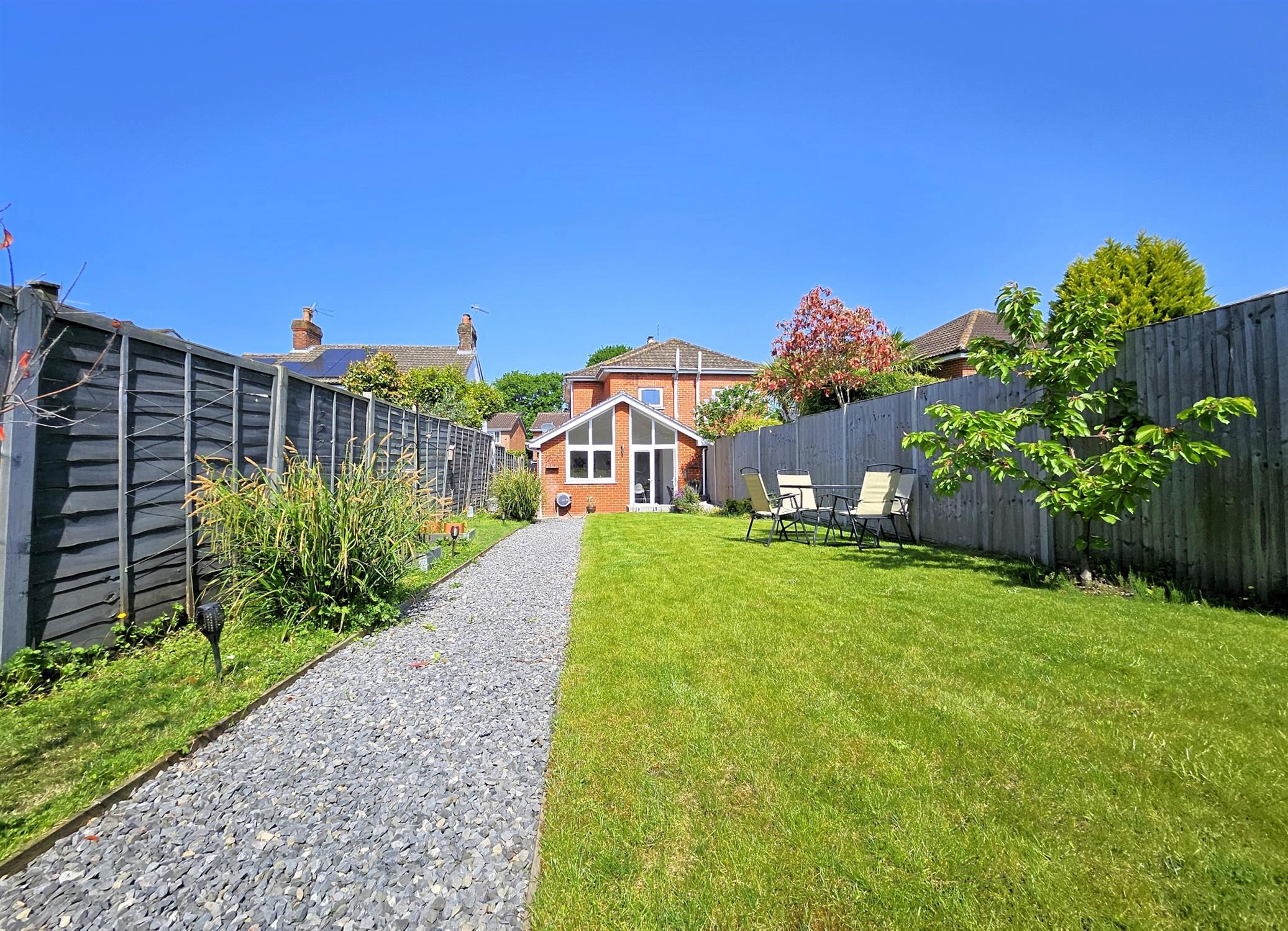 Enclosed with timber panell fencing, a southerly aspect, large well-maintained lawns, sun patio, shrub - flower borders, side pedestrian access to the frontage, access to: