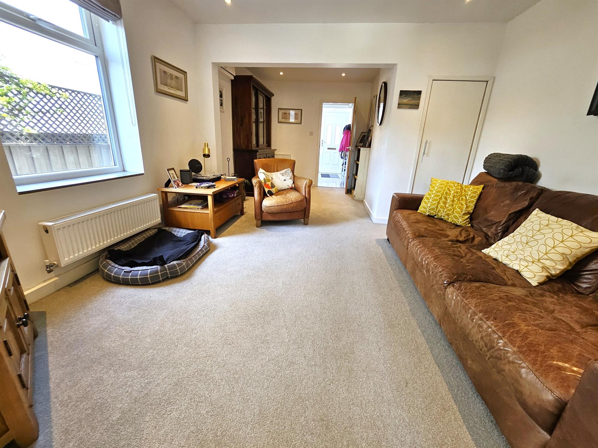 Upvc double-glazed window to the side aspect, twin radiators, built-in storage cupboard, TV aerial point, carpeted flooring, door leading into kitchen / diner.