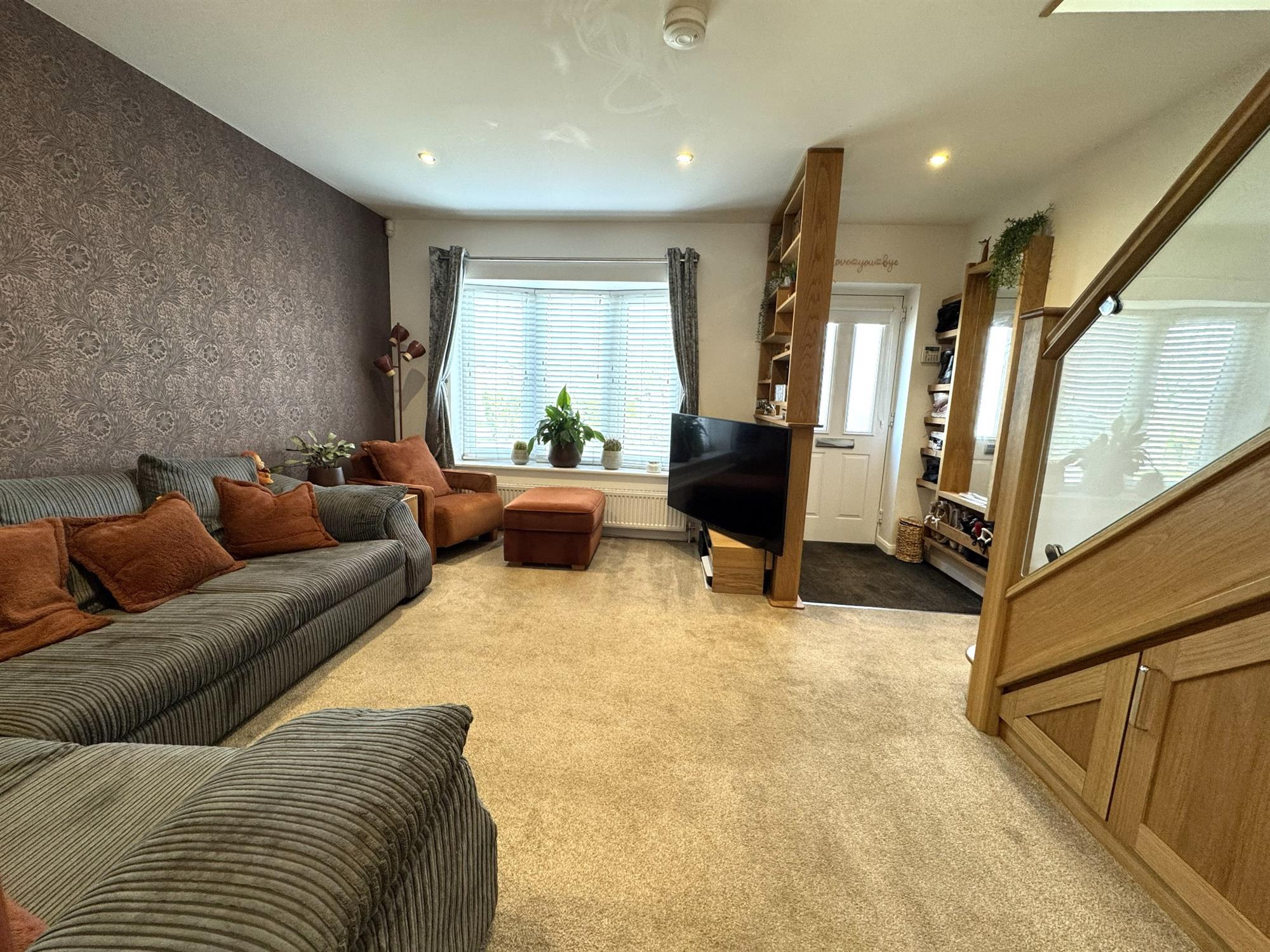 Double glazed bow window to the front aspect, oak and glazed stairs rising to the first floor, wall mounted thermostat, built in under stair cupboards, door to: