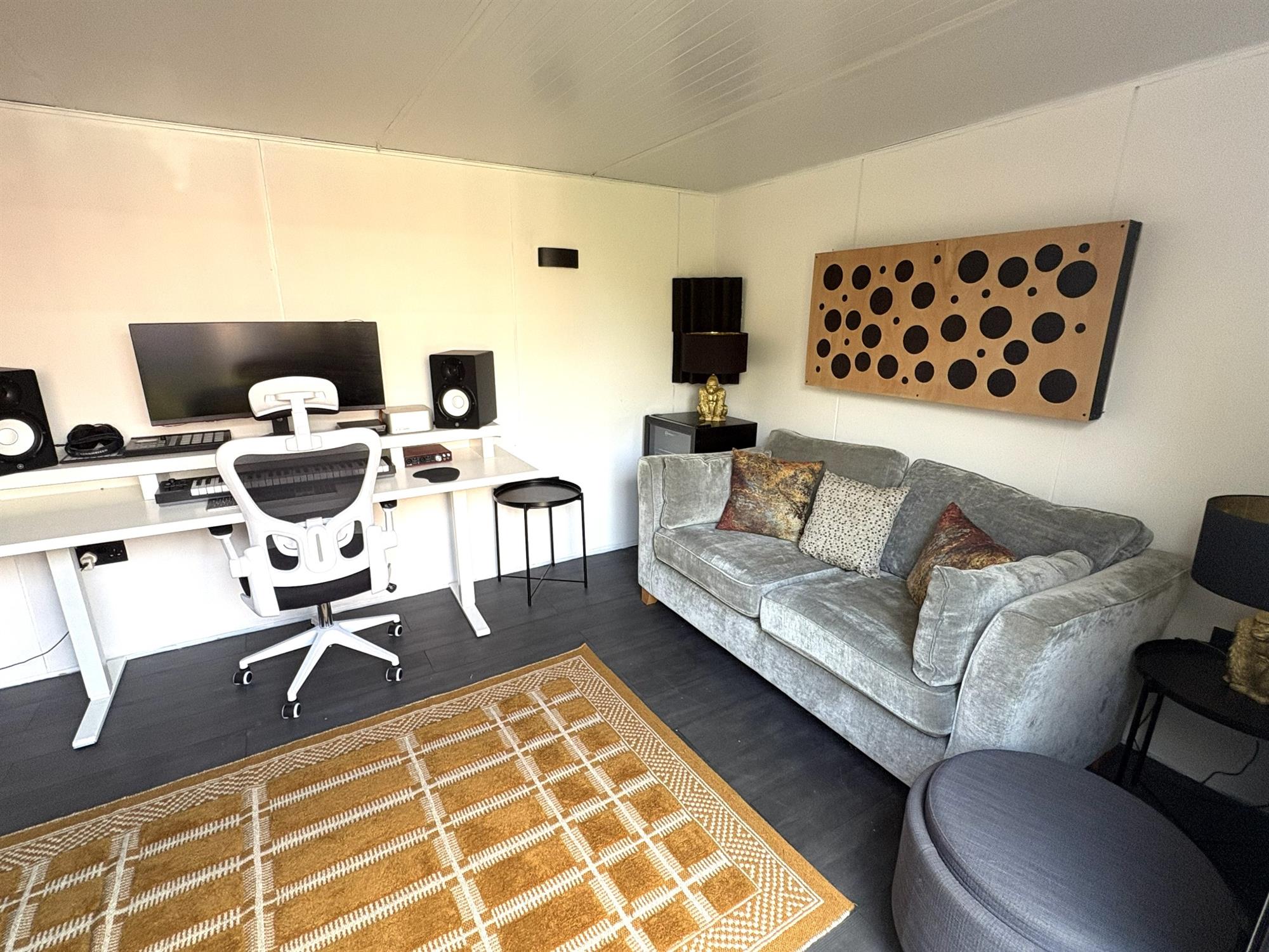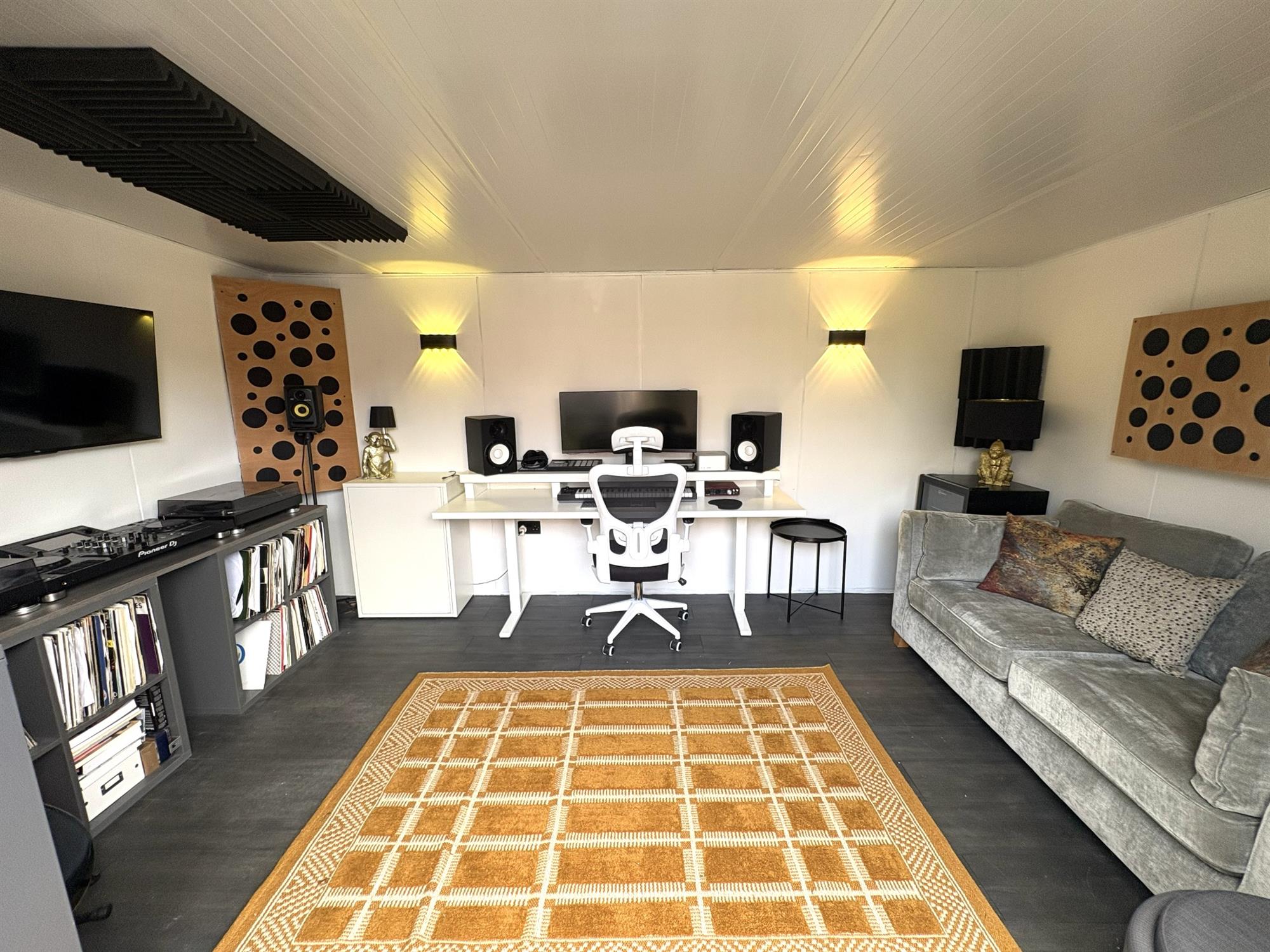 Double glazed French doors onto rear garden, power, lighting, Ethernet cable connection and insulated for multi seasonal use.