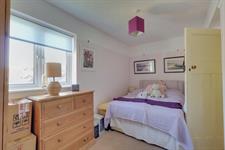 Textured ceiling with fitted extractor fan, frosted uPVC window to rear aspect. Shower cubicle with glass door, wall mounted electric shower with tiled walls. Pedestal hand basin and close coupled WC. Wall mounted electric ladder style towel rail.