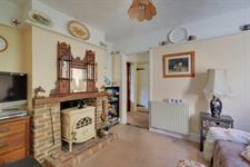 Textured ceiling, uPVC bay window to front aspect. Wall mounted, electric radiator with independent controls. Feature brick fireplace with brick hearth. Glazed French doors leading to dining room;