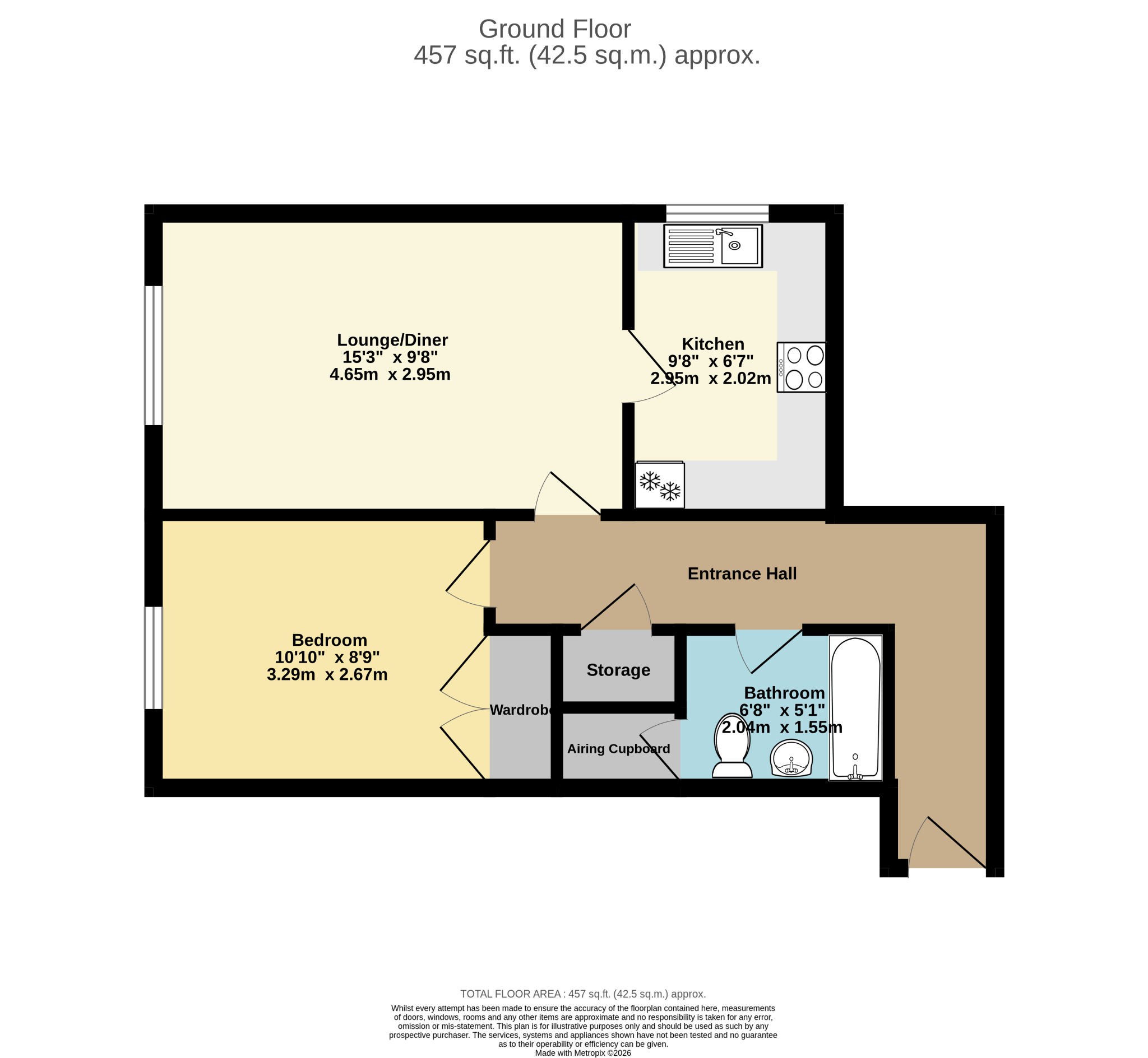 Wood effect laminate flooring, built-in wardrobe with folding mirrored doors, double-glazed UPVC window to front aspect, electric storage heater.
