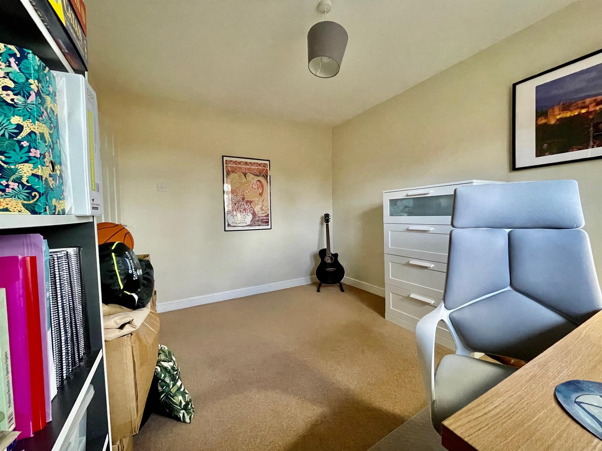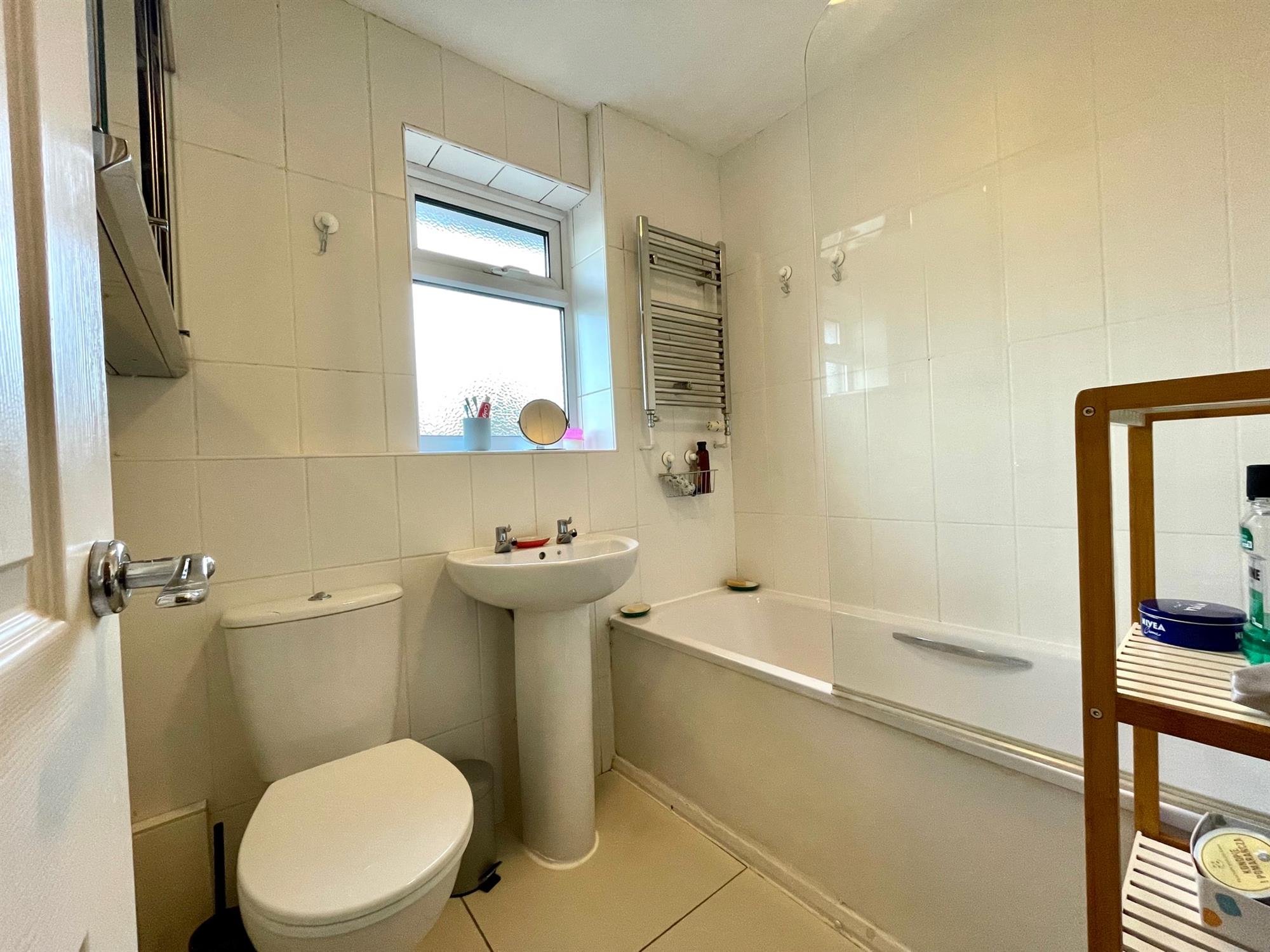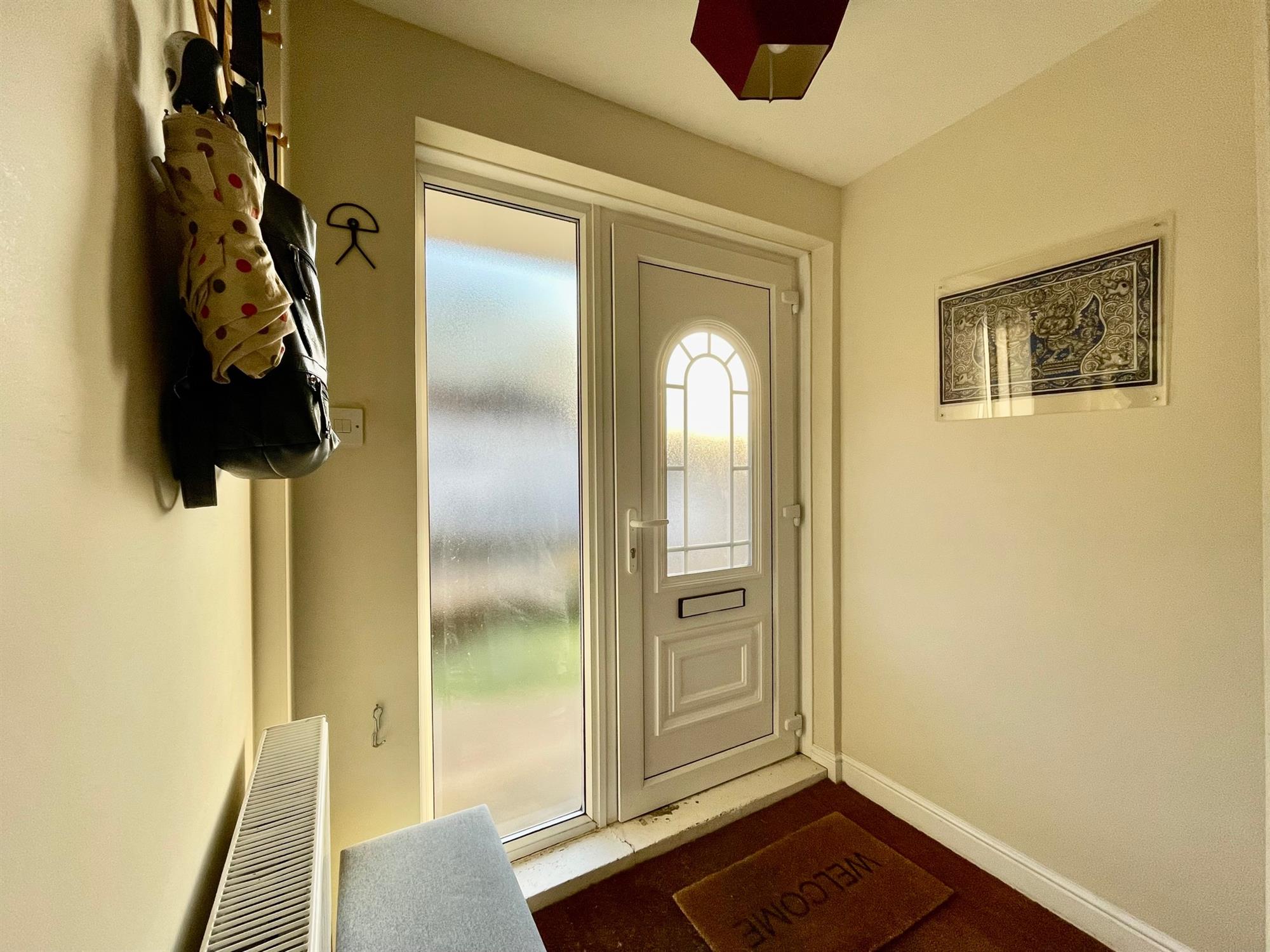 On the first floor, there are two generous double bedrooms, one of which further benefits from a built-in cupboard. The family bathroom is a white suite and is fitted with shower over bath, toilet, handbasin and chrome heated towel rail.