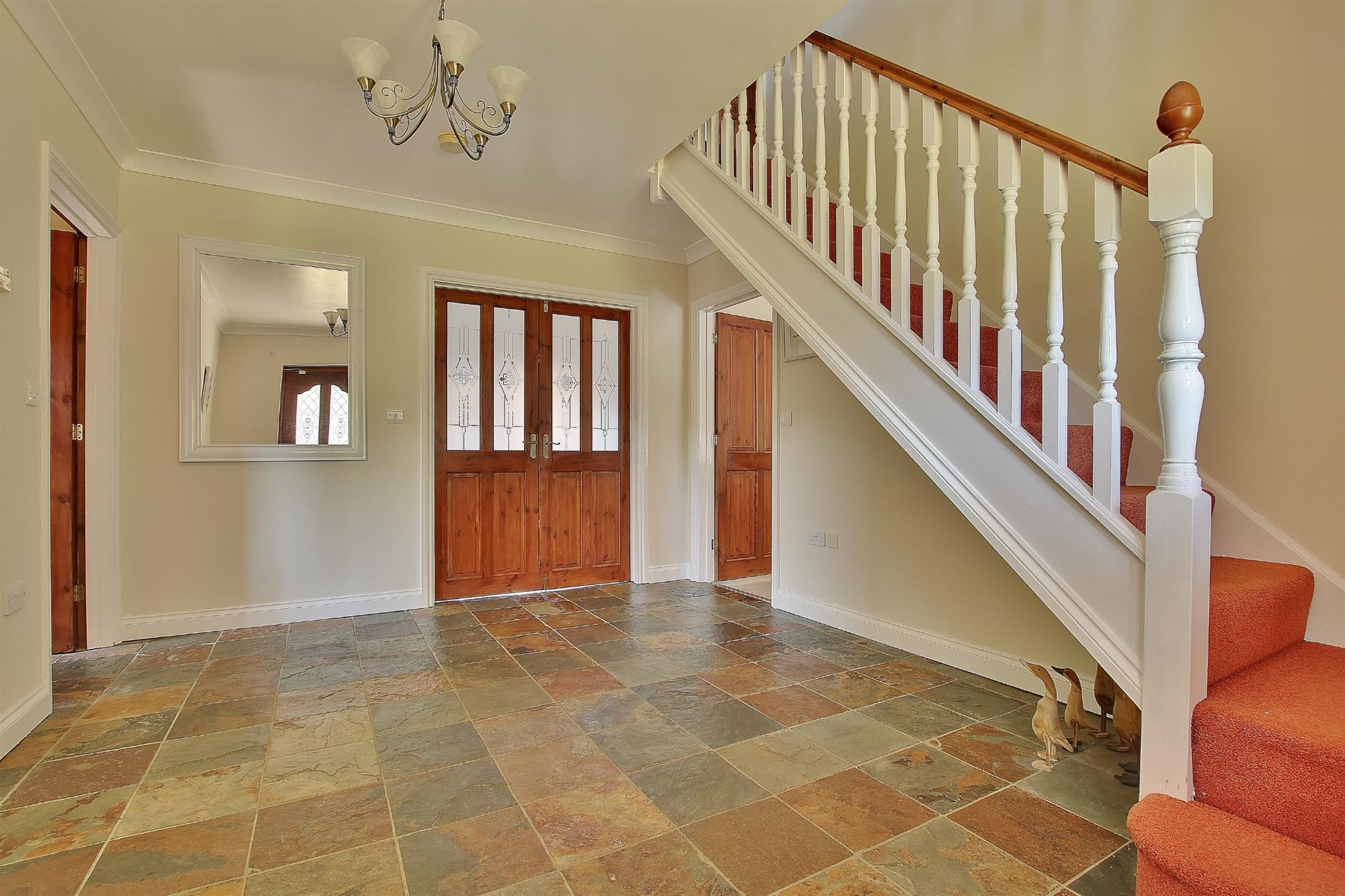 ENTRANCE HALL:Part-glazed wooden front door with double glazed window to one side. Very spacious with slate flooring running throughout. Stairs rising to the first floor. Part-glazed double doors through to the kitchen/breakfast room, doors to the sitting room. study/bedroom four and the utility room.