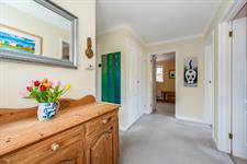 Spacious entry way with double door storage cupboard and an airing cupboard housing a Vaillaint gas combi boiler, loft hatch with a pull down ladder to a part boarded loft space, radiator.