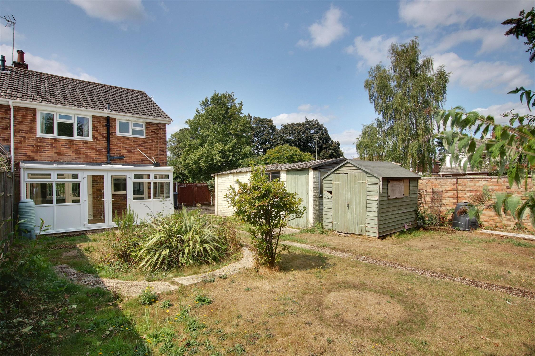 Driveway to the side with off-road parking for at least two cars with double gates opening onto additional vehicle standing leading to the detached garage with up-and-over door and personal door to the rear. The rear garden is of a good size enjoying a good degree of privacy and seclusion and mainly laid to lawn with mature borders and a variety of flowers and shrubs. The garden is enclosed by panel fencing and a brick wall, the other side of which is an open-plan area of garden separating the house from the footpath and which is mainly laid to lawn.