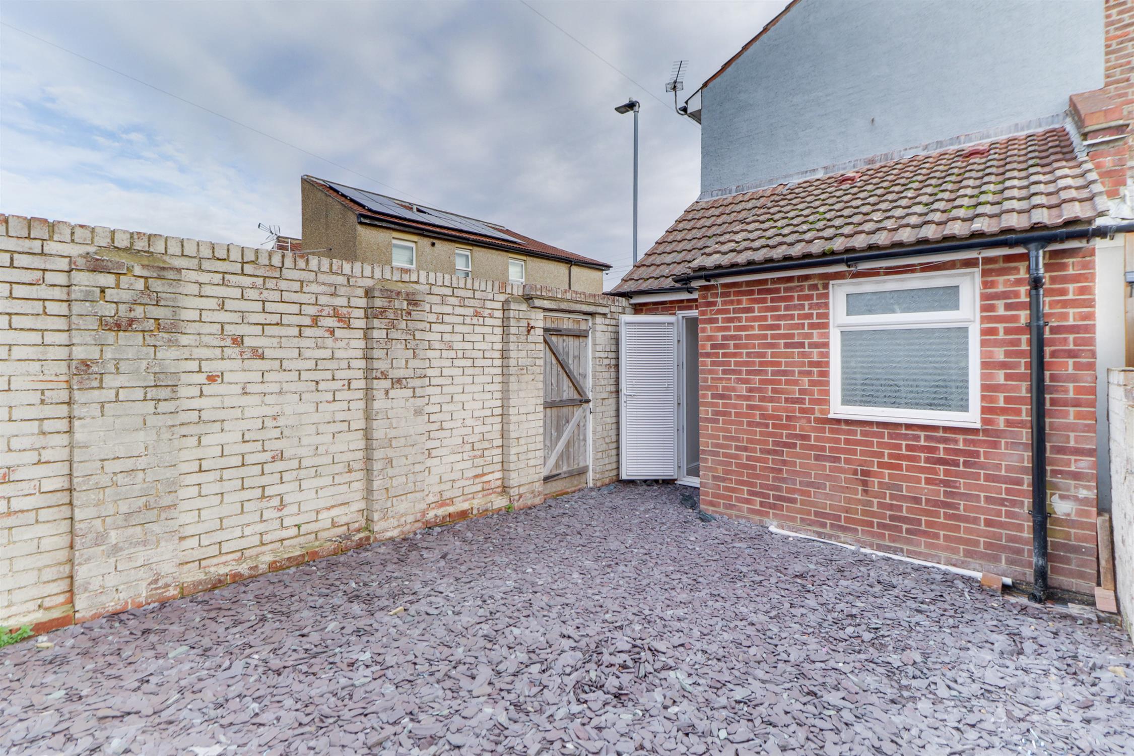 To the rear, a brick wall enclosed west-facing garden laid with shingle and with side pedestrian access.