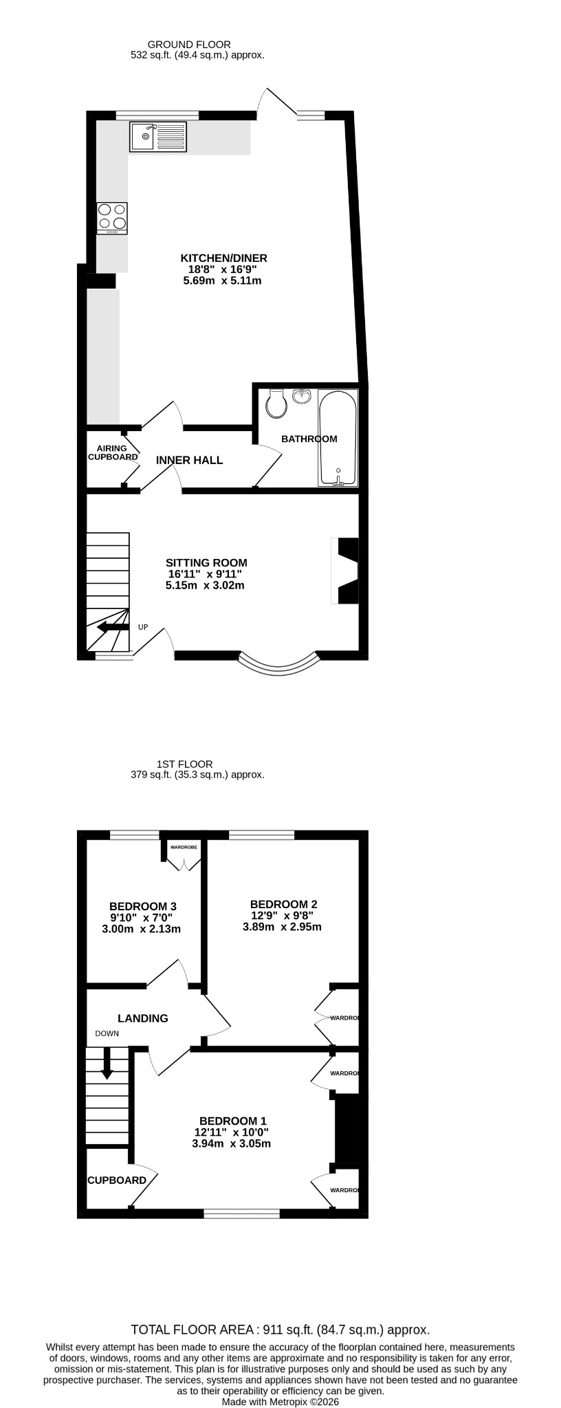 Door to the kitchen/diner and bathroom. Airing cupboard.