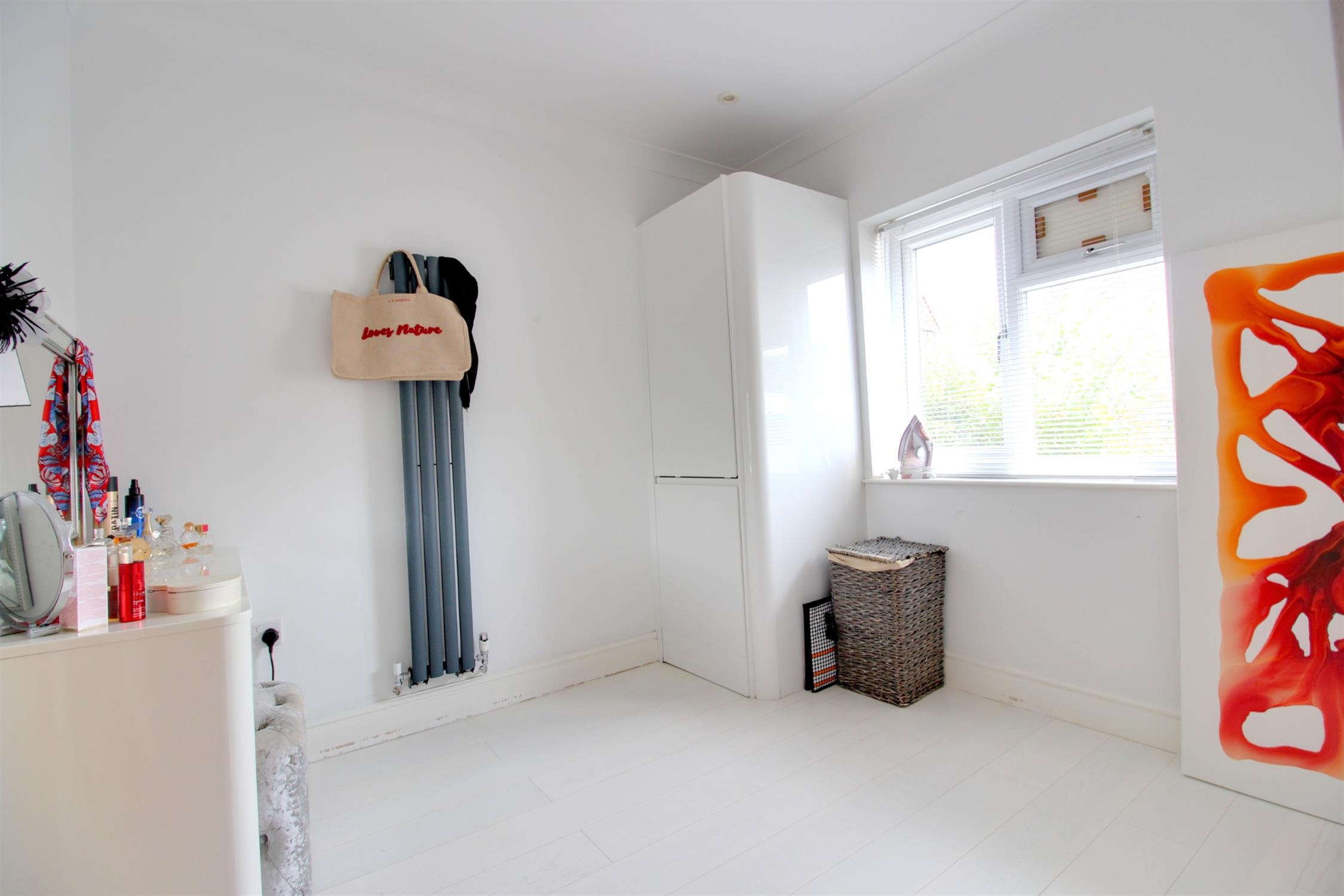 Currently being used as a dressing room with double glazed window to the side, wooden flooring, radiator, and cupboard providing space and plumbing for washing machine and tumble dryer.