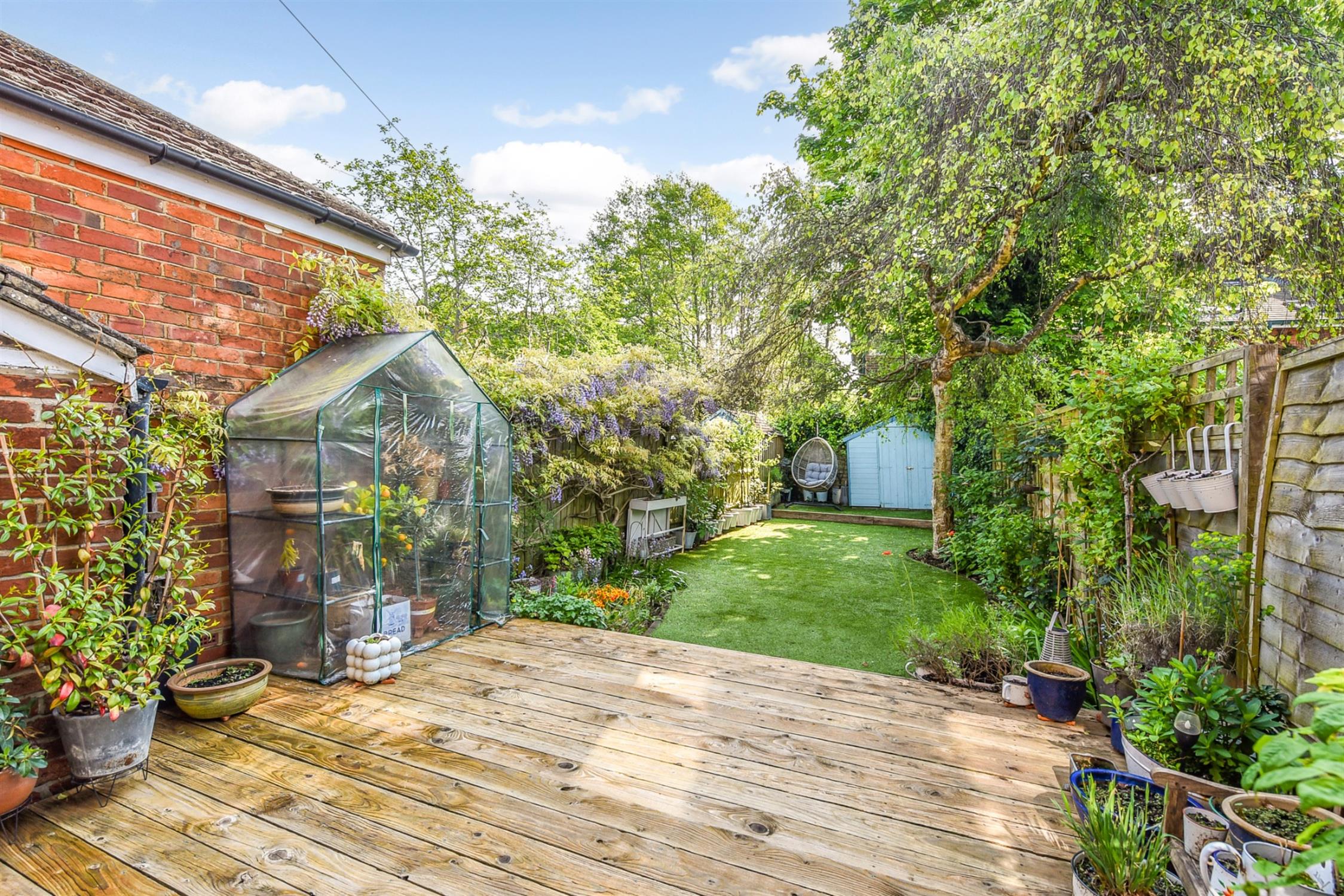 Outside, there is decked terrace, brick-built storage and lawn.