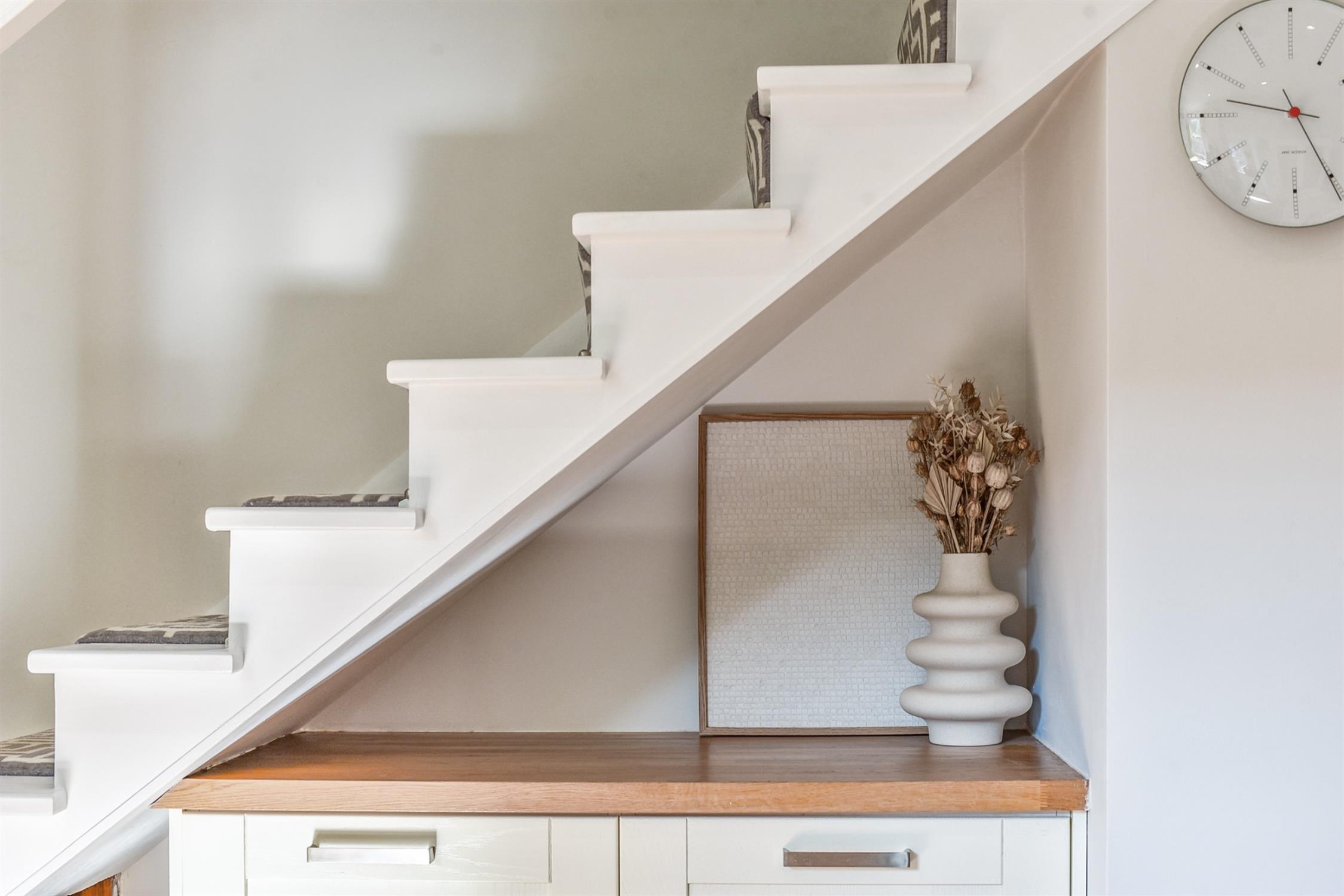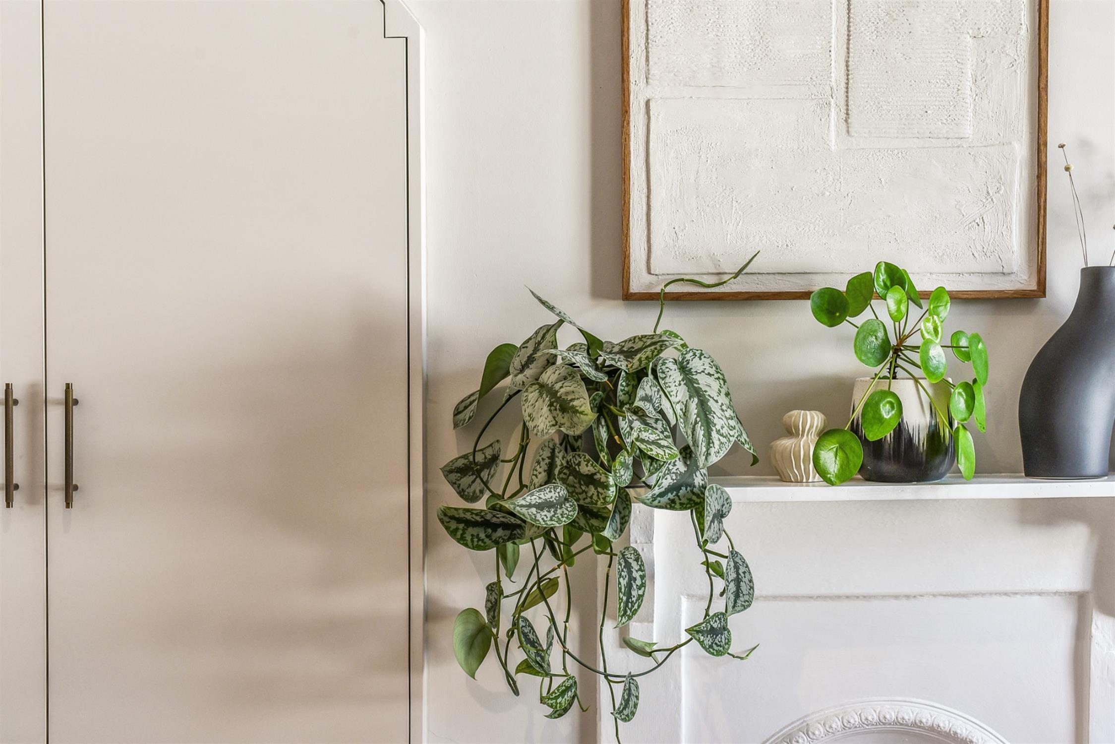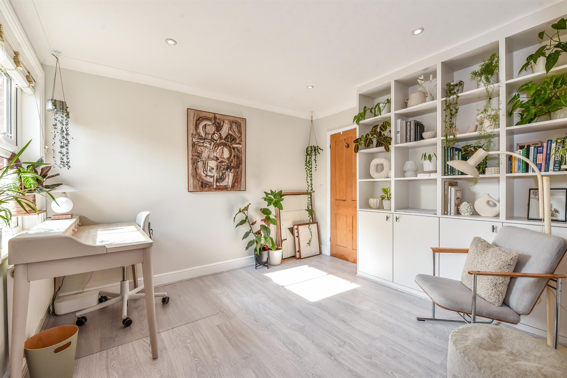 Upstairs there is a bright bedroom with feature fireplace and bespoke fitted storage. The second bedroom is also a double with built in storage and attractive shelving unit. The bathroom has been fitted to a modern and contemporary style with white suite, including free standing bath and separate double shower.