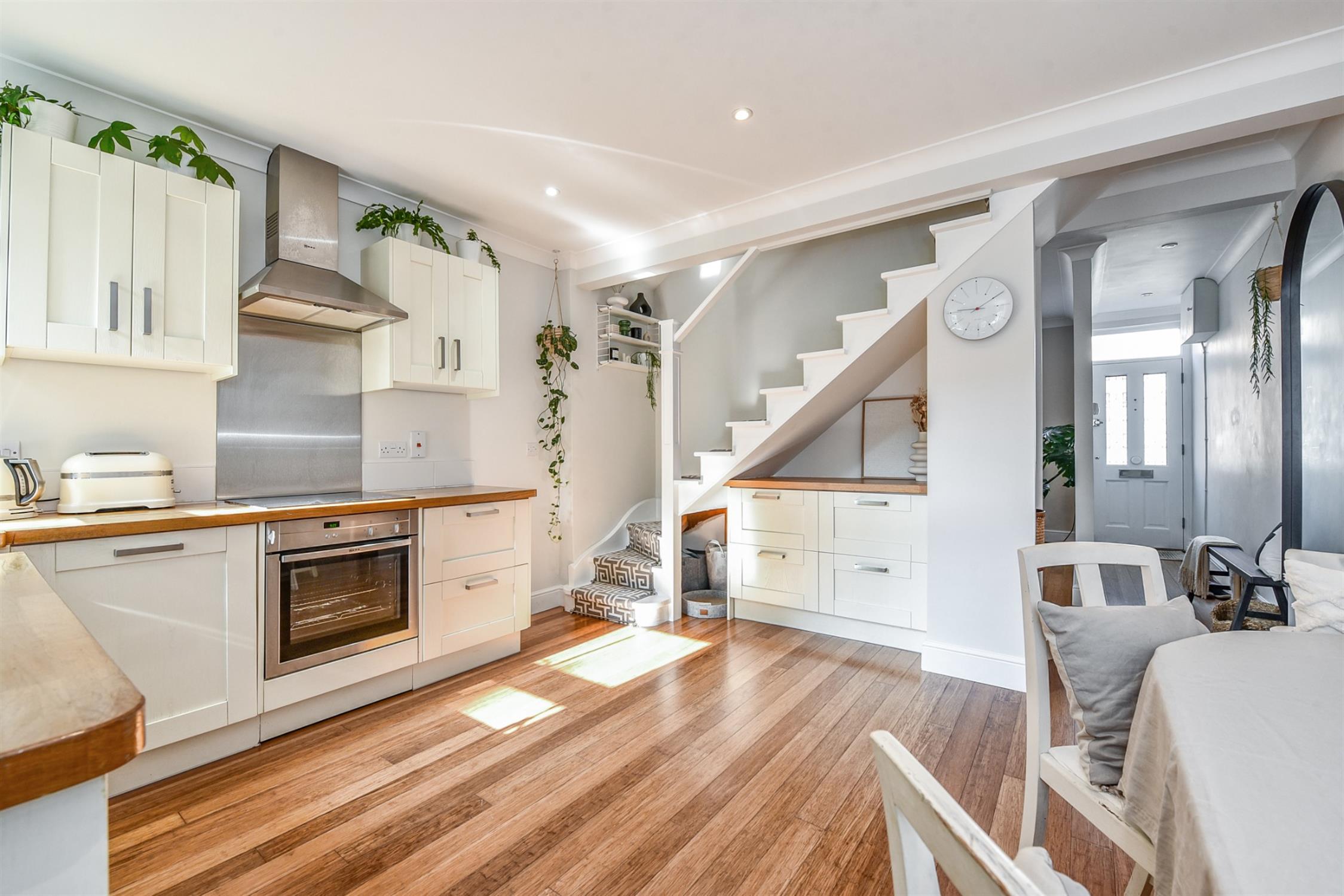 Located on a quiet road in a terrific city centre location, this mid-terrace cottage is stunning. Neutrally presented throughout in a minimalistic yet warm fashion, the current vendor has a excellent style and has made tasteful improvements without offending the period features. The front door leads to a hallway which opens out into a cosy living room with wood burner and exposed brick chimney breast. The kitchen offers ample space to dine, with stairs to the first floor and utility room to the rear with WC. Throughout the ground floor, there is engineered bamboo flooring, and the utility room is tiled.