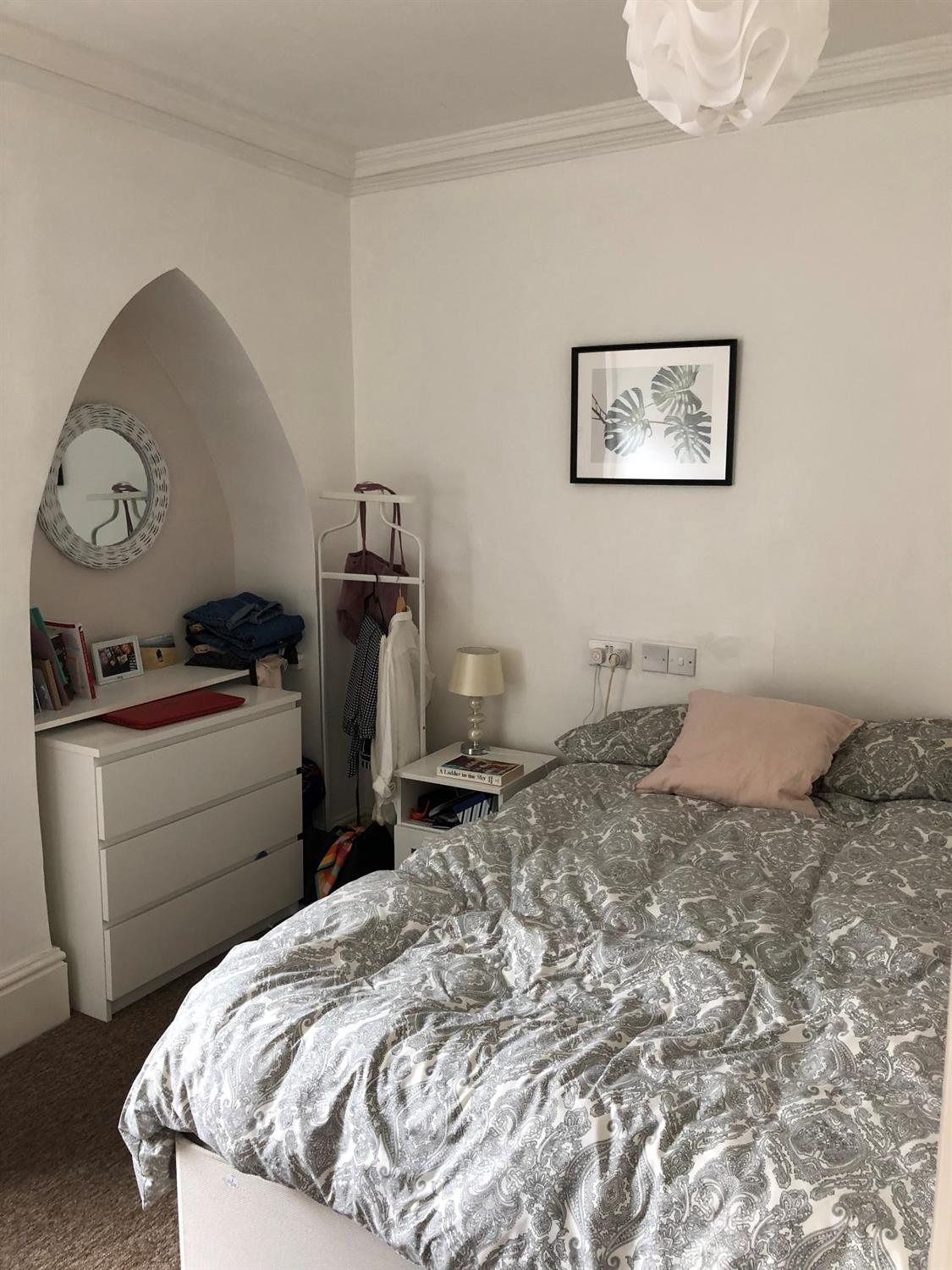 BEDROOM – Double bedroom with window to side. Carpeted. Entrance to bathroom. Furniture consists of: 2 x drawer units, double bed and mattress and bedside unit.