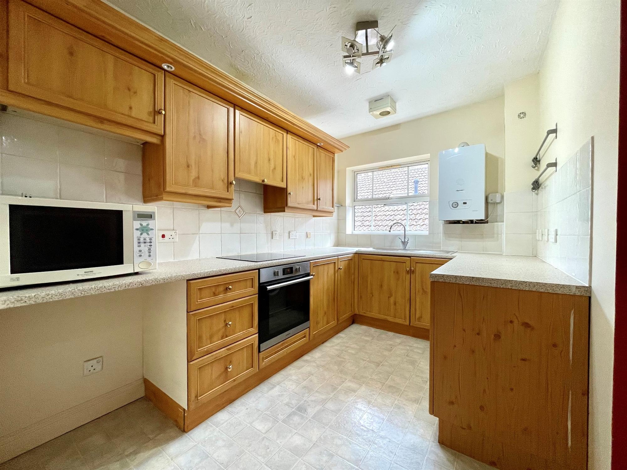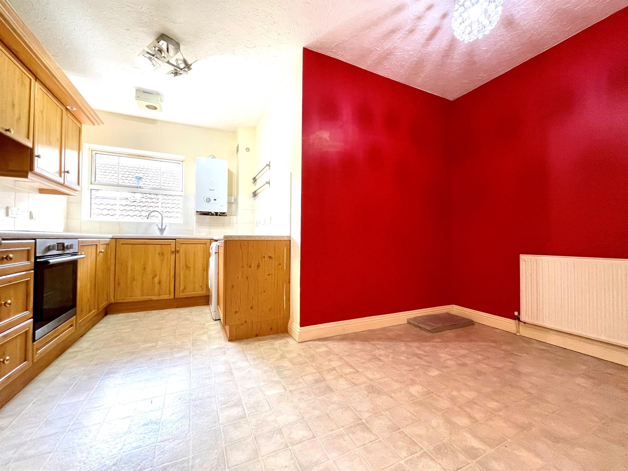 KITCHEN/DINER - Modern kitchen with various wall and base units. Electric hob, electric cooker, washing machine. Window.